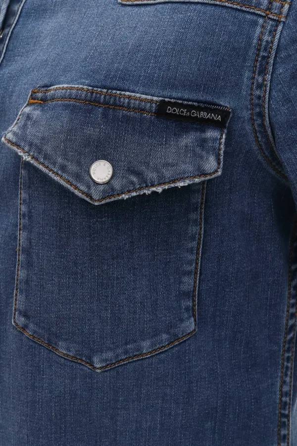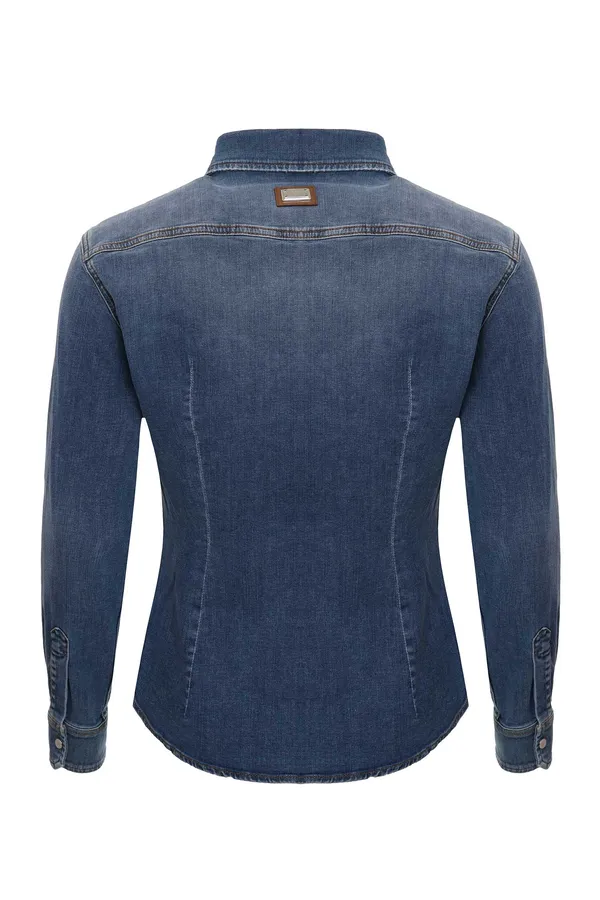 РУБАШКА СИНЯЯ ДЖИНСОВАЯ, НА ГРУДИ НАКЛАДНЫЕ КАРМАНЫ