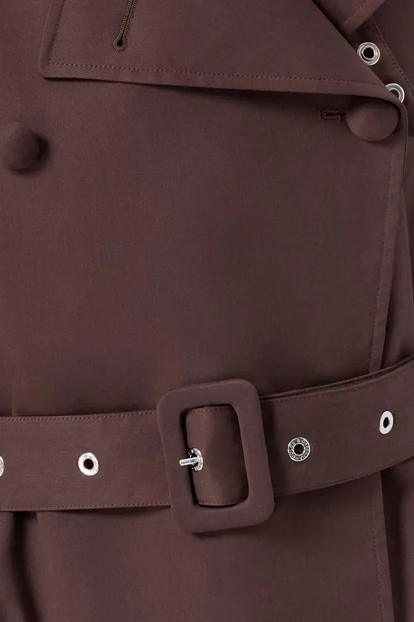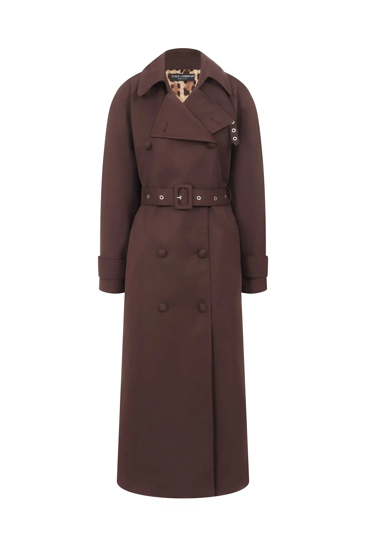 ТРЕНЧ Т/КОРИЧНЕВЫЙ, ДВУБОРТНЫЙ, ДЛИННЫЙ, ЛЕОПРАДОВАЯ ПОДКЛАДКА, РУКАВ-РЕГЛАН, ПОЯС