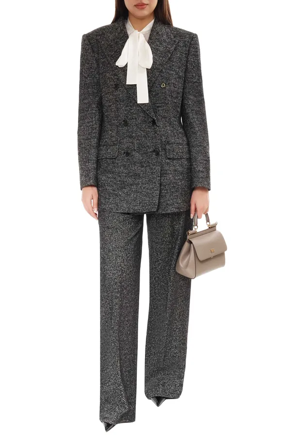 Двубортный жакет из плотной шерстяной ткани с выразительной фактурой создаёт структурный силуэт и подчёркивает архитектурность линии плеч. Классическая конструкция с острыми лацканами, шлицей на рукавах и идеальной посадкой делает модель универсальной для повседневных и формальных образов. Внутренняя часть полностью на подкладке, обеспечивающей комфорт и аккуратное облегание. Выполнен в Италии из шерсти с добавлением современных волокон для прочности и формы.