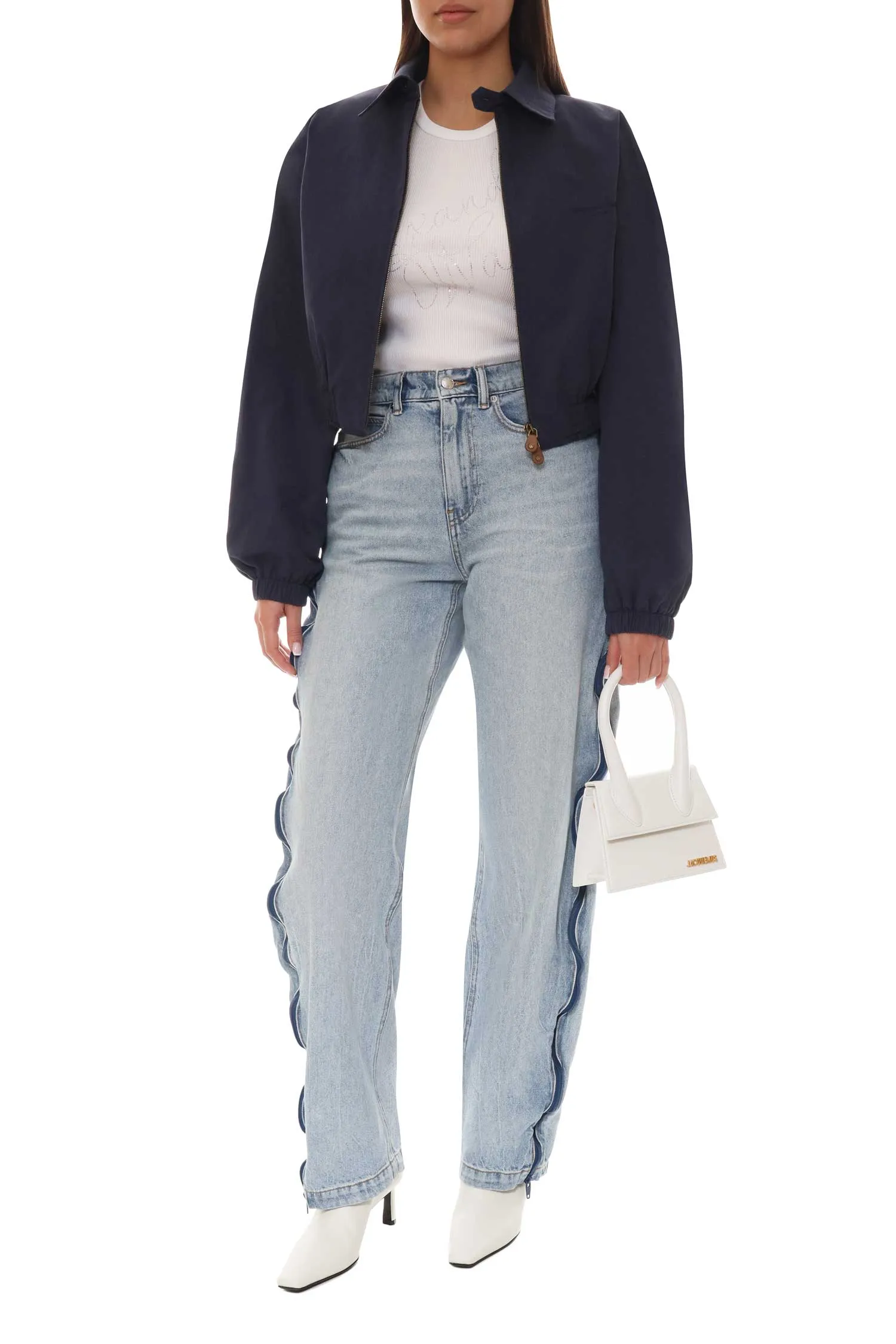 БОМБЕР Т/СИНИЙ УКОРОЧЕННЫЙ, КАРМАНЫ НА МОЛНИИ, ОБЪЁМНЫЕ ПЛЕЧИ