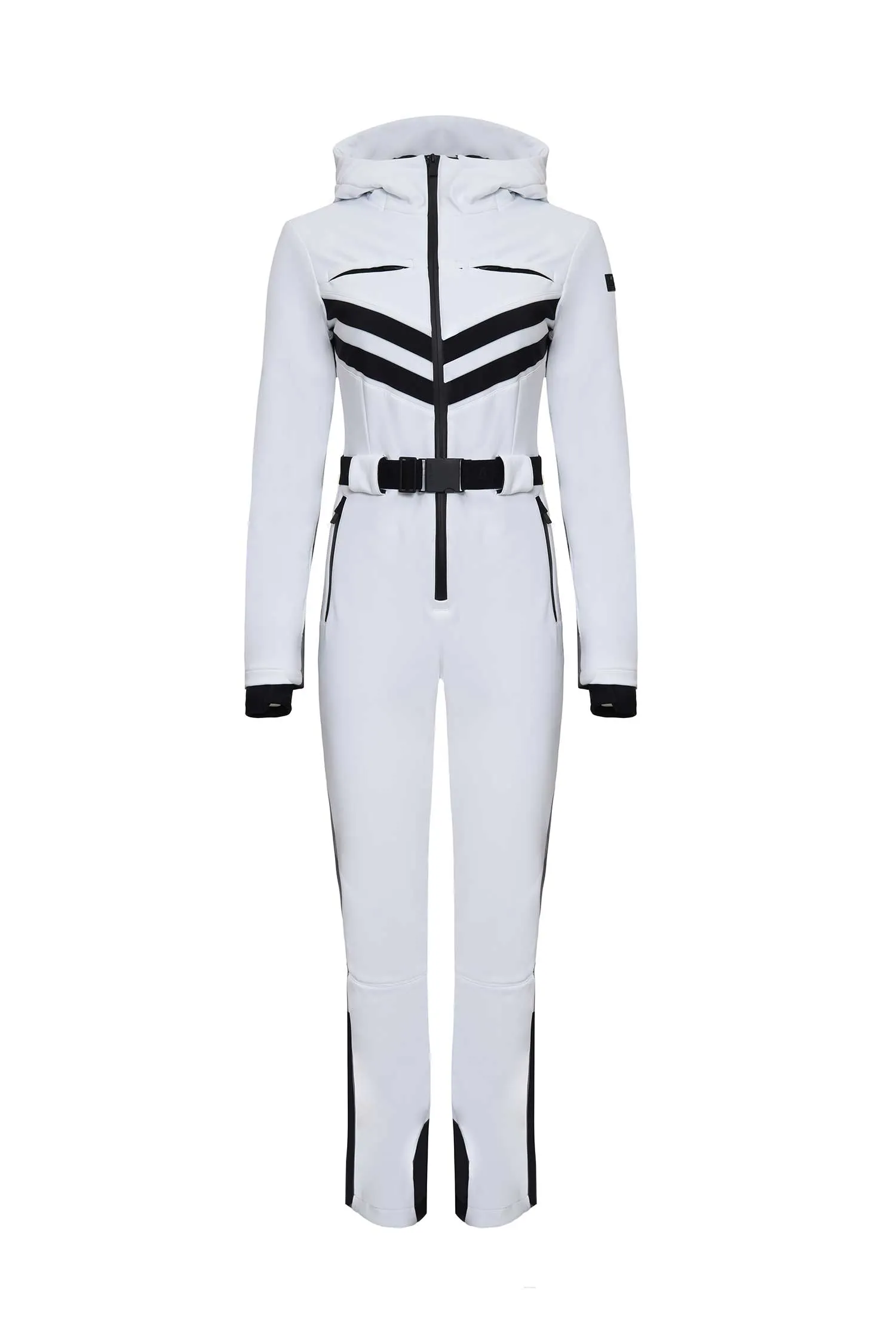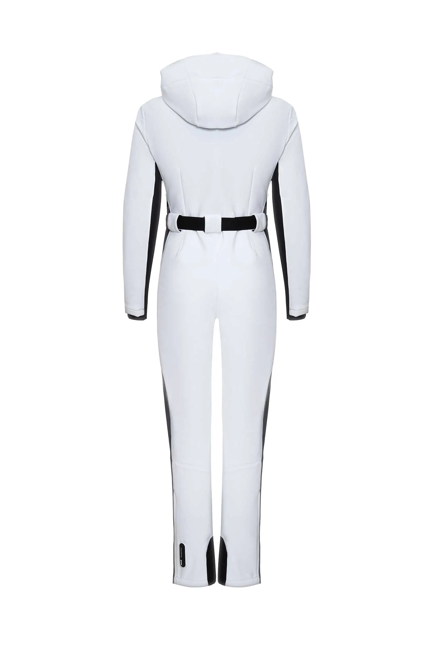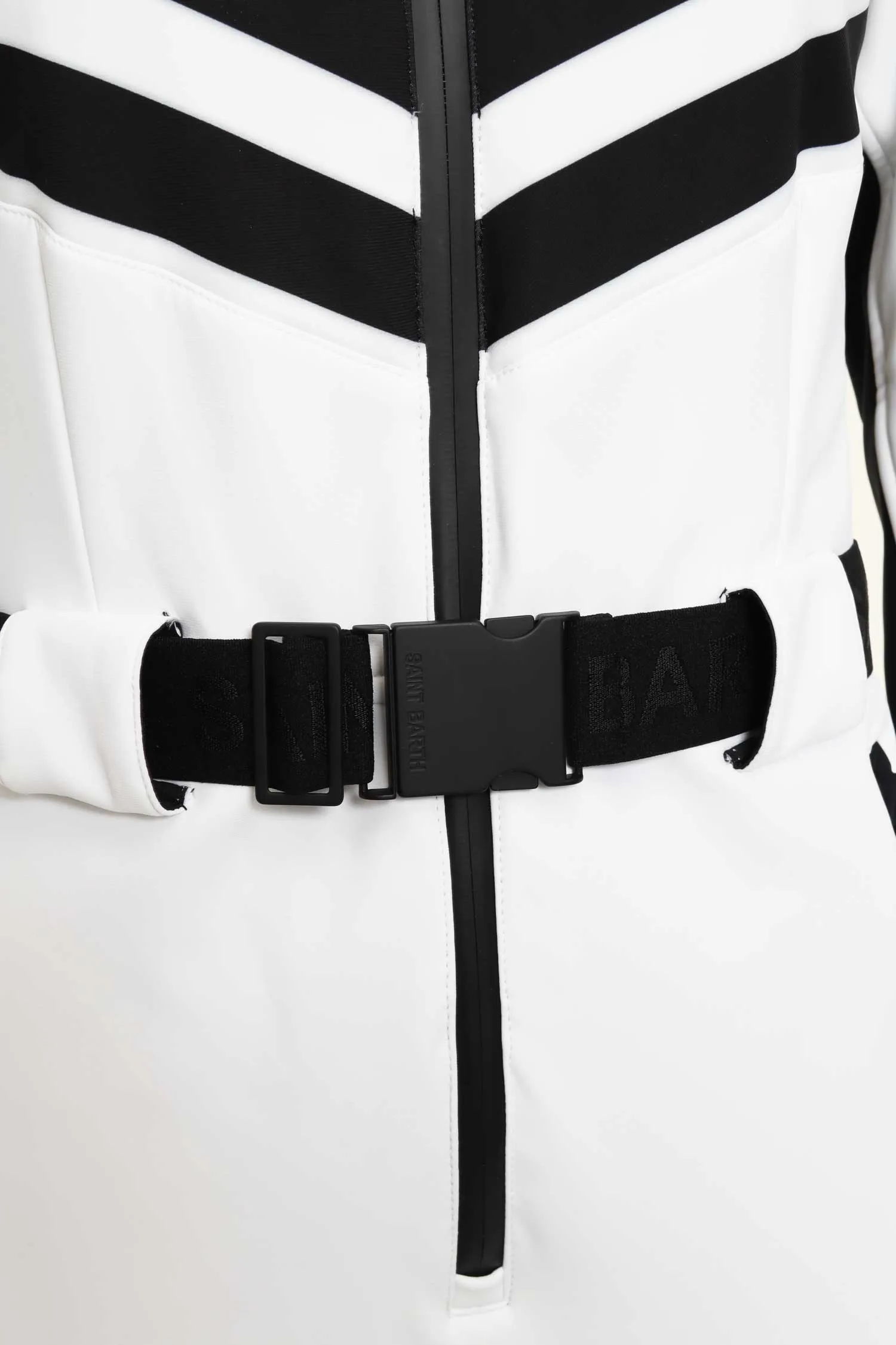 КОМБИНЕЗОН GARMISCH БЕЛЫЙ, НА МОЛНИИ, ЧЁРНЫЕ ЛАМПАСЫ, КАПЮШОН, РЕМЕНЬ