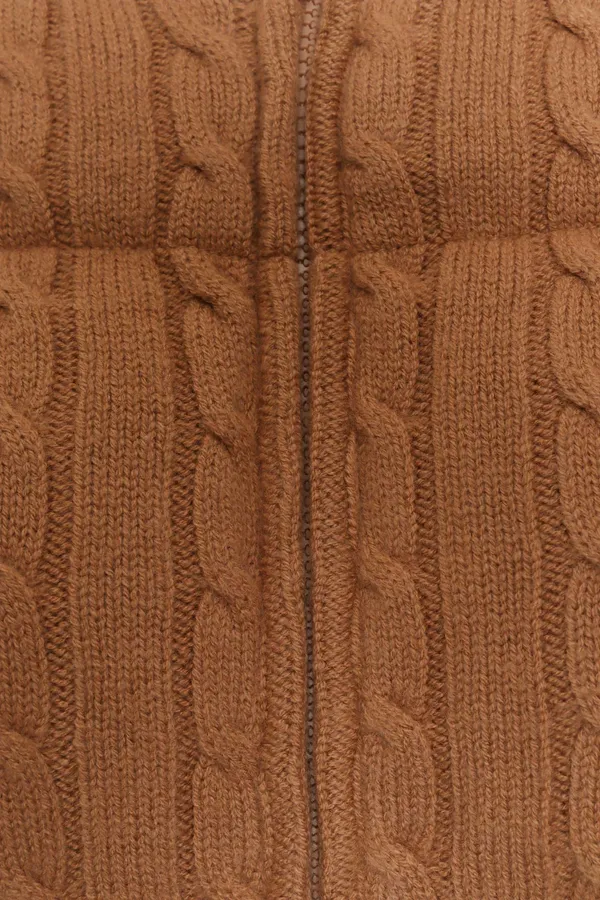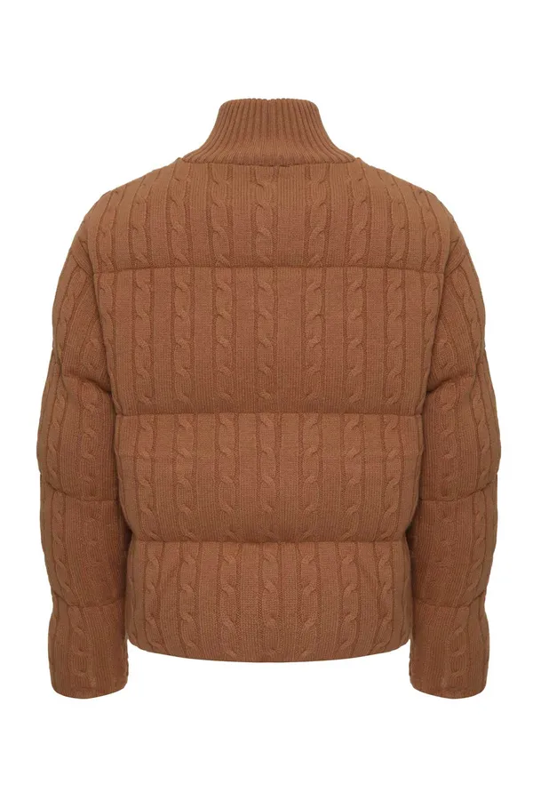 ПУХОВИК MYA WOOL СВ/КОРИЧНЕВЫЙ ШЕРСТЬ, ВЯЗКА КОСЫ, С СИНТЕТ.НАПОЛН., КОРОТКИЙ, КАРМАНЫ, ВОРОТ-СТОЙКА