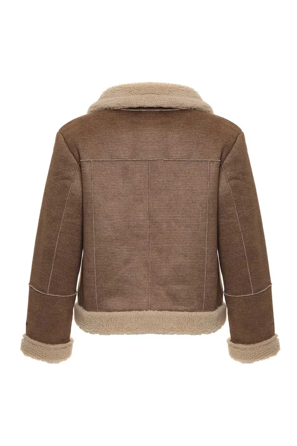 MC2 SAINT BARTH ДУБЛЁНКА-АВИАТОР LORAYNE SHEARLING СВ/КОРИЧНЕВАЯ, ПРИНТ ГУСИНАЯ ЛАПКА