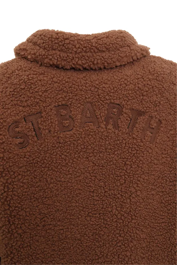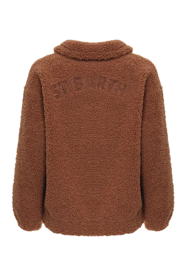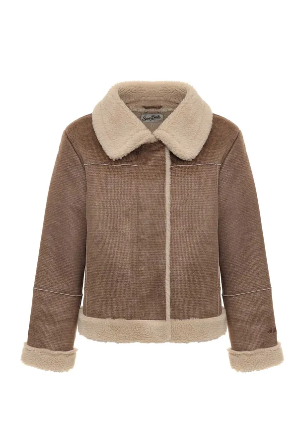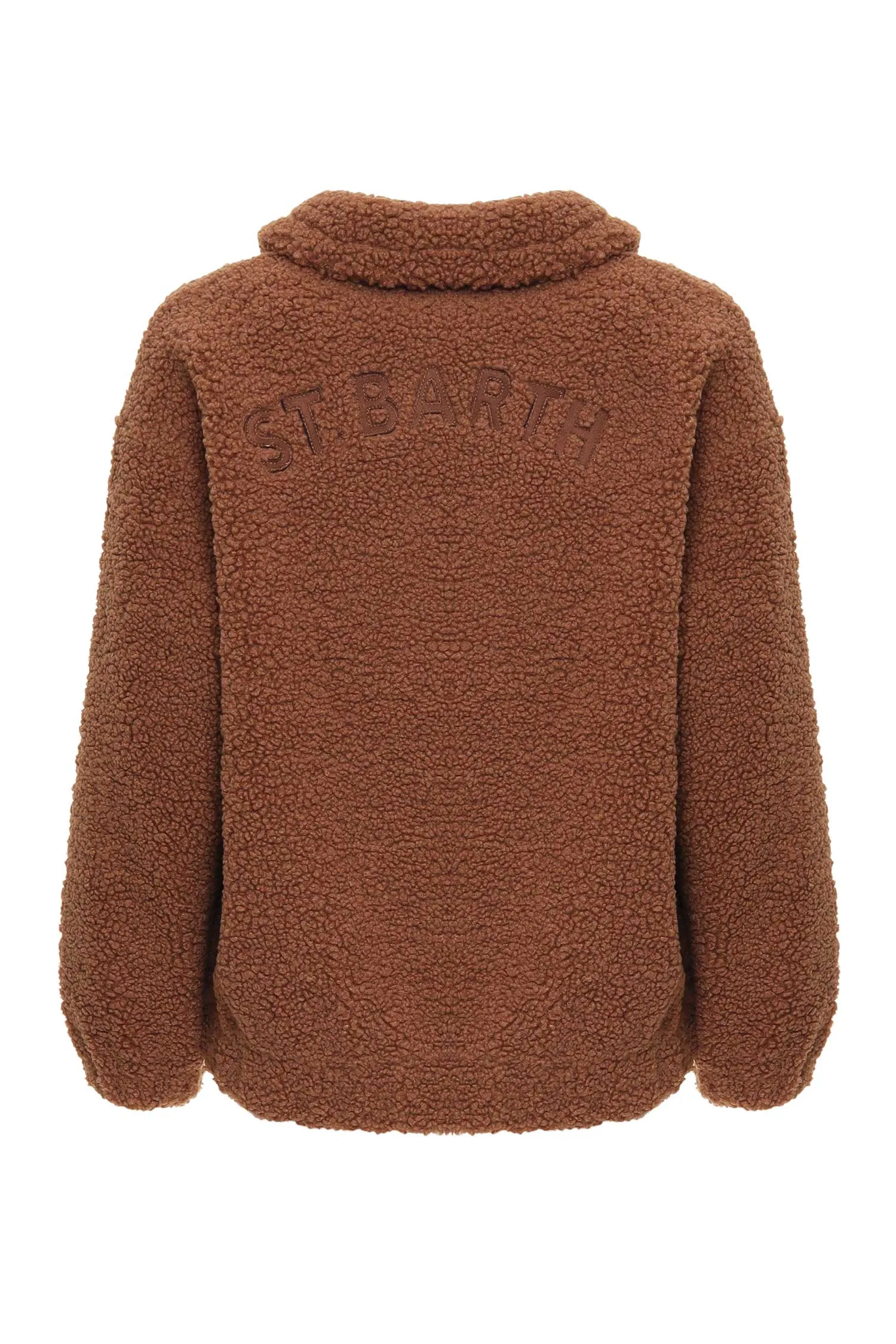 ШУБА JEANNE TEDDY КОРИЧНЕВАЯ, НА СПИНЕ ЛОГО-НАДПИСЬ, ЭКОМЕХ
