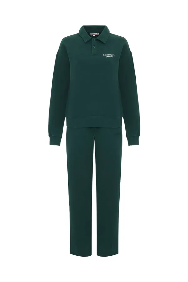 КОСТЮМ BERENICE DEENA Т/ЗЕЛЁНЫЙ, ПОЛО ДЛ/РУК. + ШТАНЫ, БЕЛАЯ ЛОГО-НАДПИСЬ НА ГРУДИ