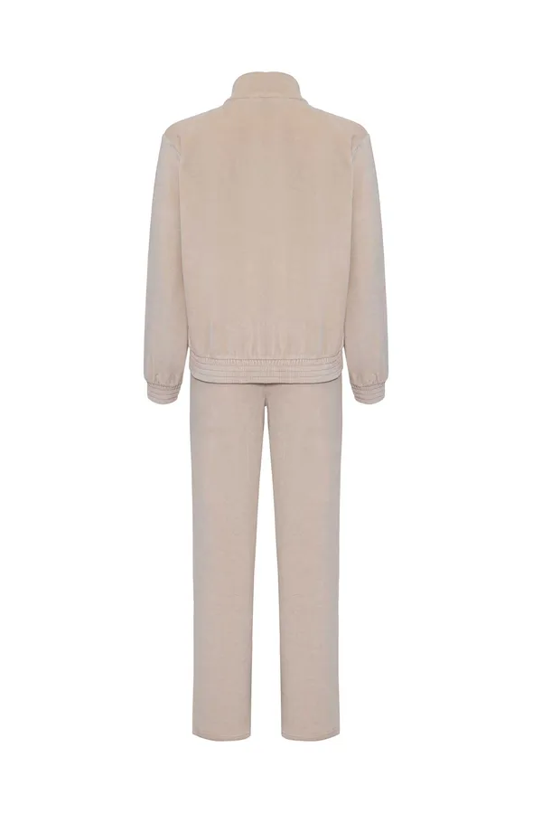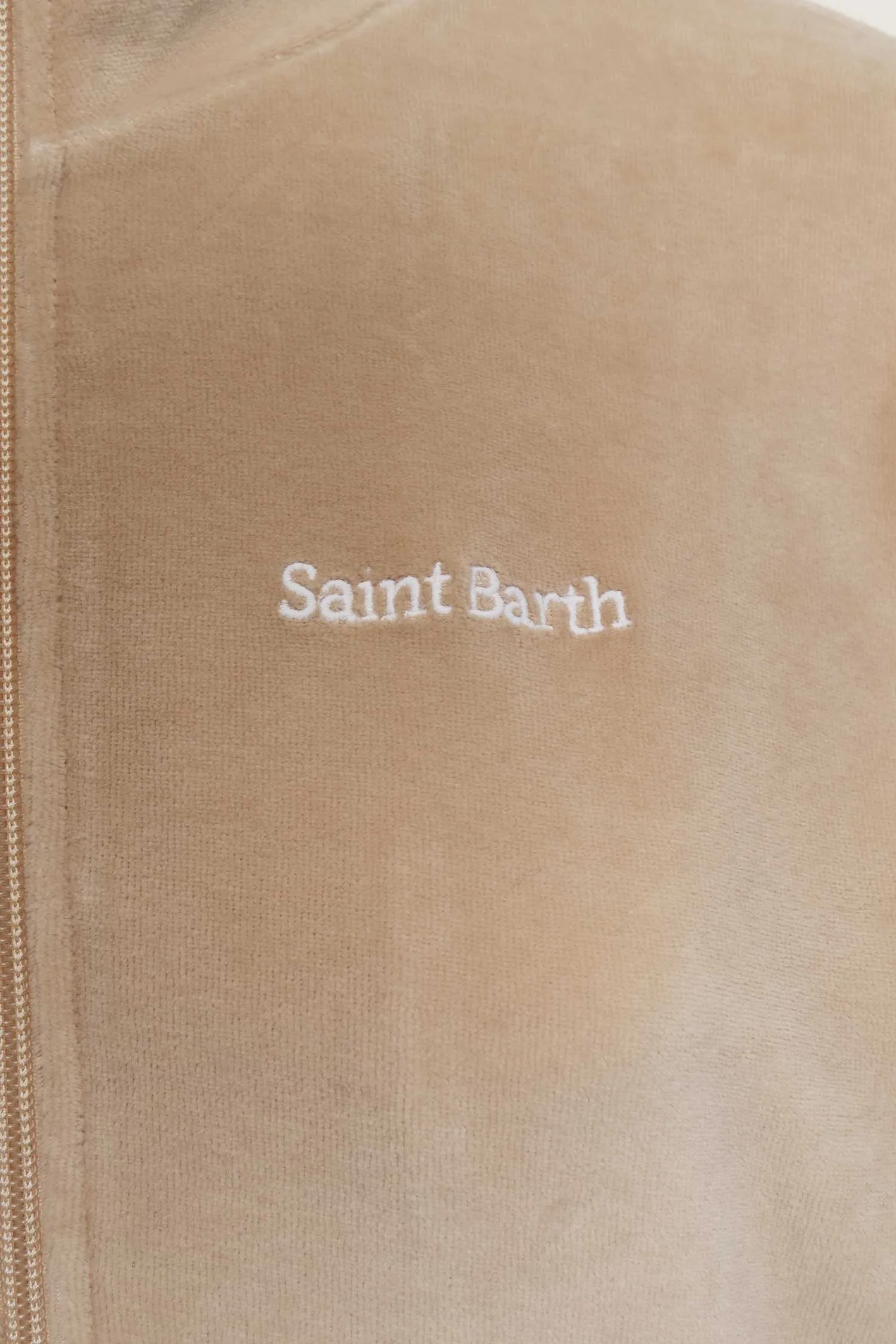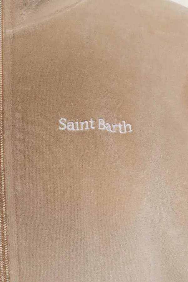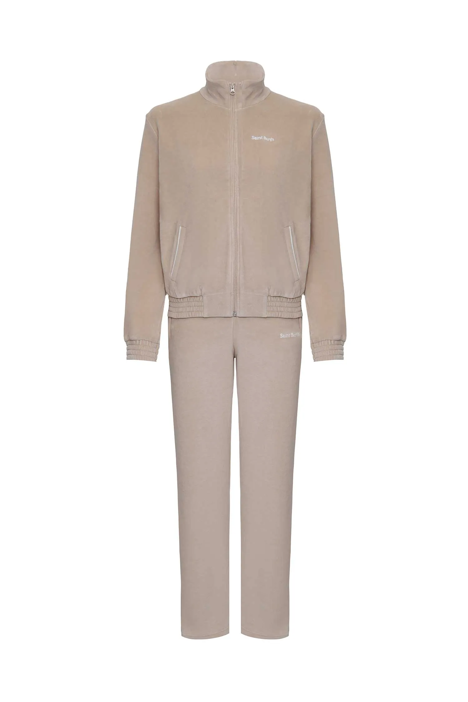 MC2 SAINT BARTH КОСТЮМ MIRIAM CHENILLE+YVONNE CHENILLE СВ/БЕЖЕВЫЙ ВЕЛЮР, ОЛИМПИЙКА+ШТАНЫ СВОБОДНЫЕ, БЕЛЫЙ КАНТ, ВОРОТ-СТОЙКА