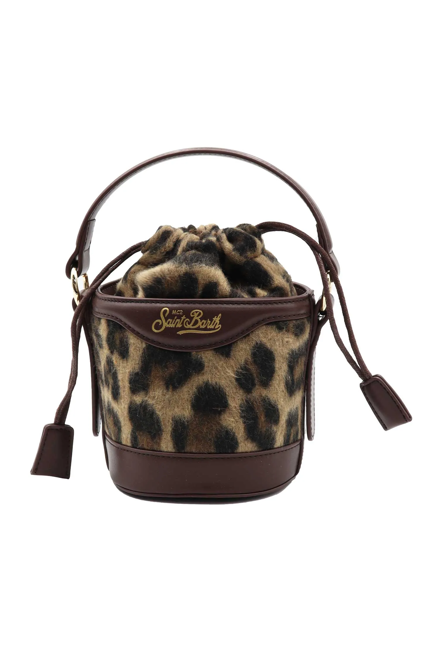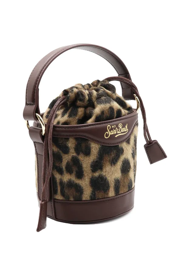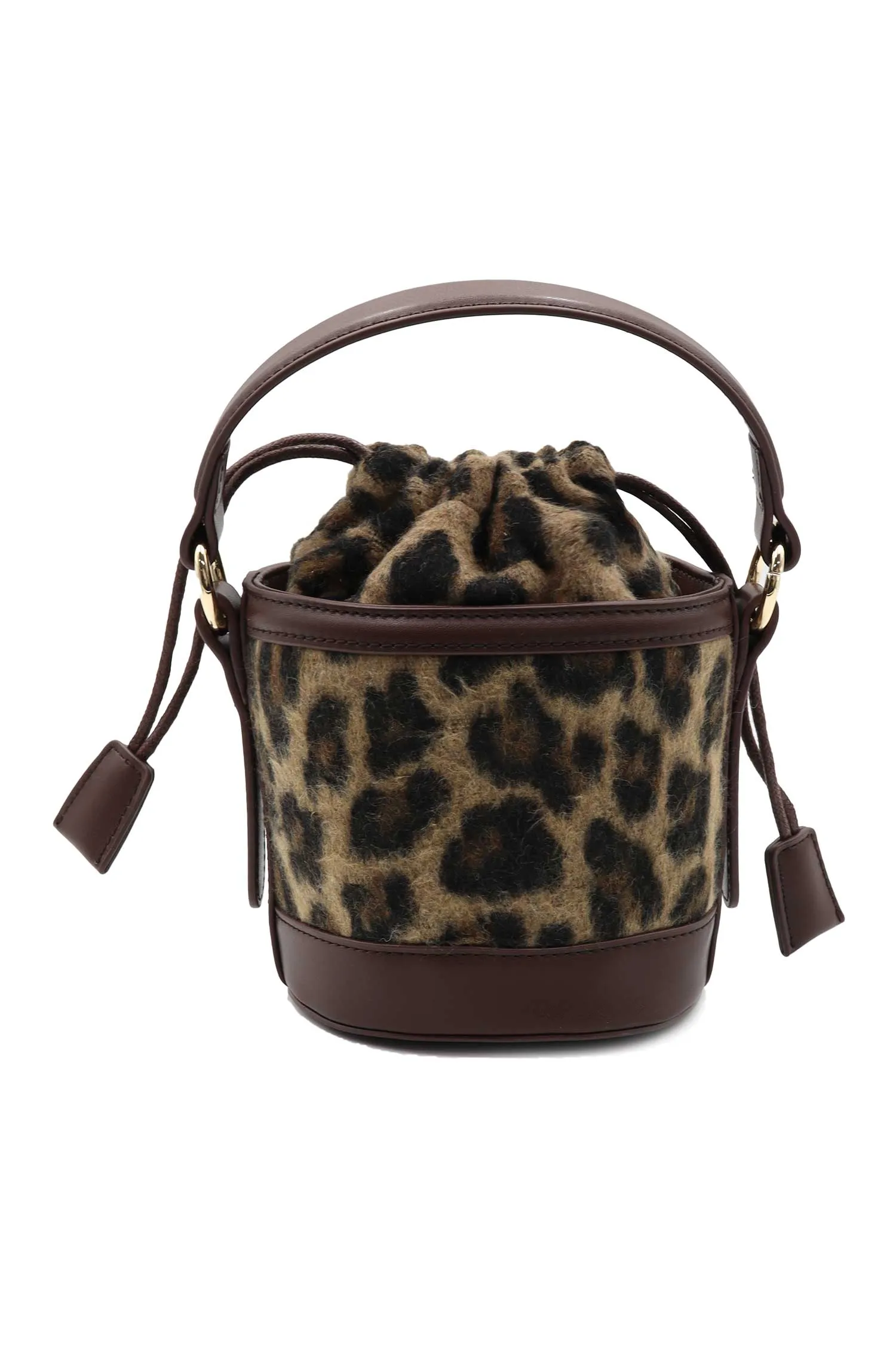 СУМКА-МЕШОК MILA FELT КОРИЧНЕВО-БЕЖЕВАЯ ЭКОМЕХ, ПРИНТ ЛЕОПАРД, МАЛЕНЬКАЯ, НА КУЛИСКЕ, РУЧКА, РЕМЕШОК