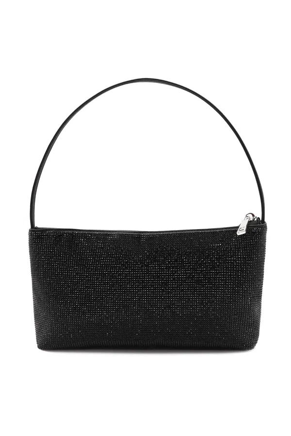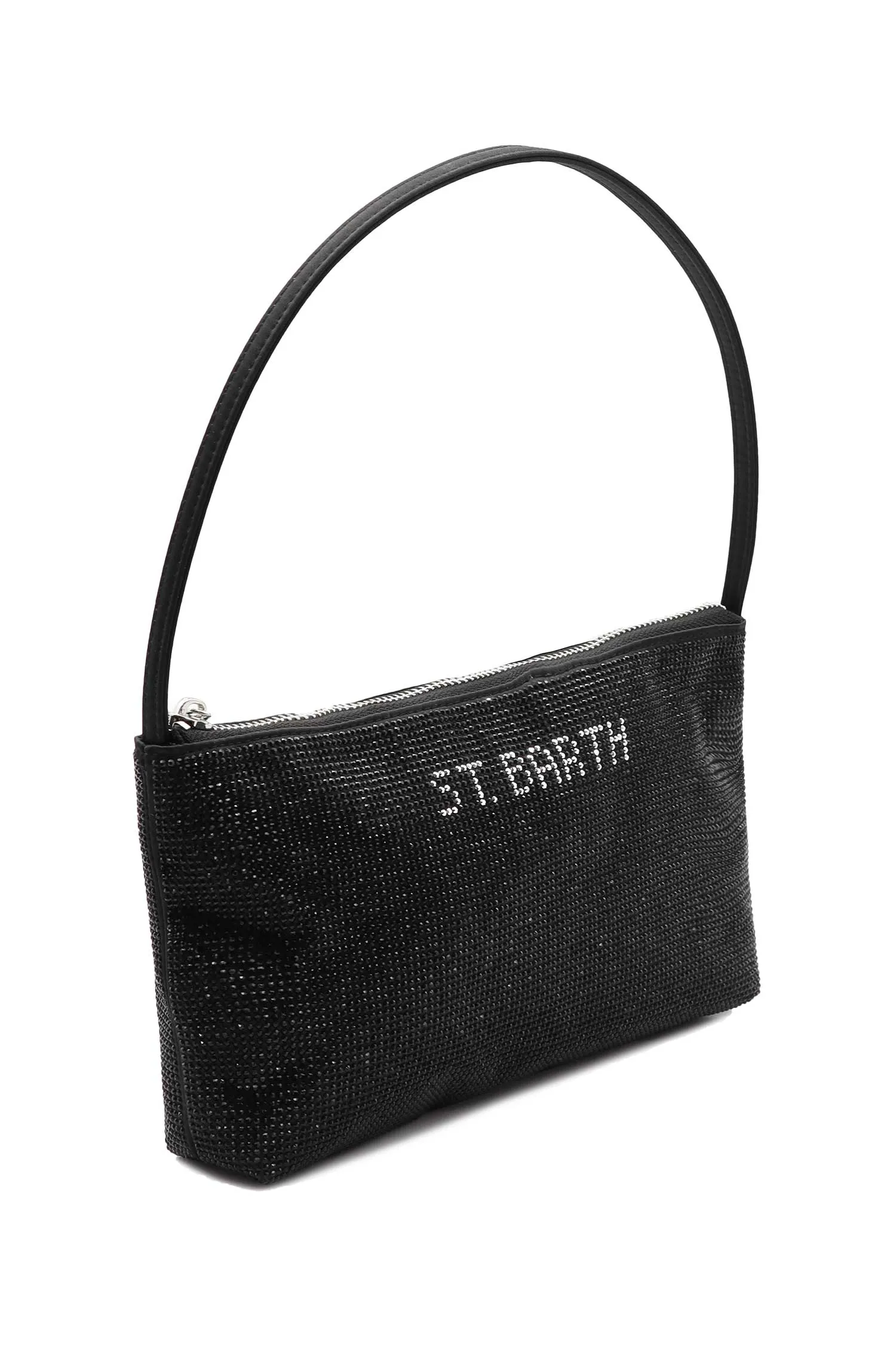 СУМКА STRASSY ЧЁРНАЯ В СТРАЗАХ, НА МОЛНИИ, СЕРЕБРИСТАЯ ЛОГО-НАДПИСЬ, РУЧКА