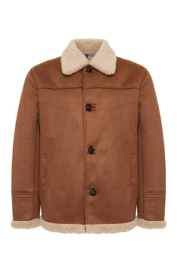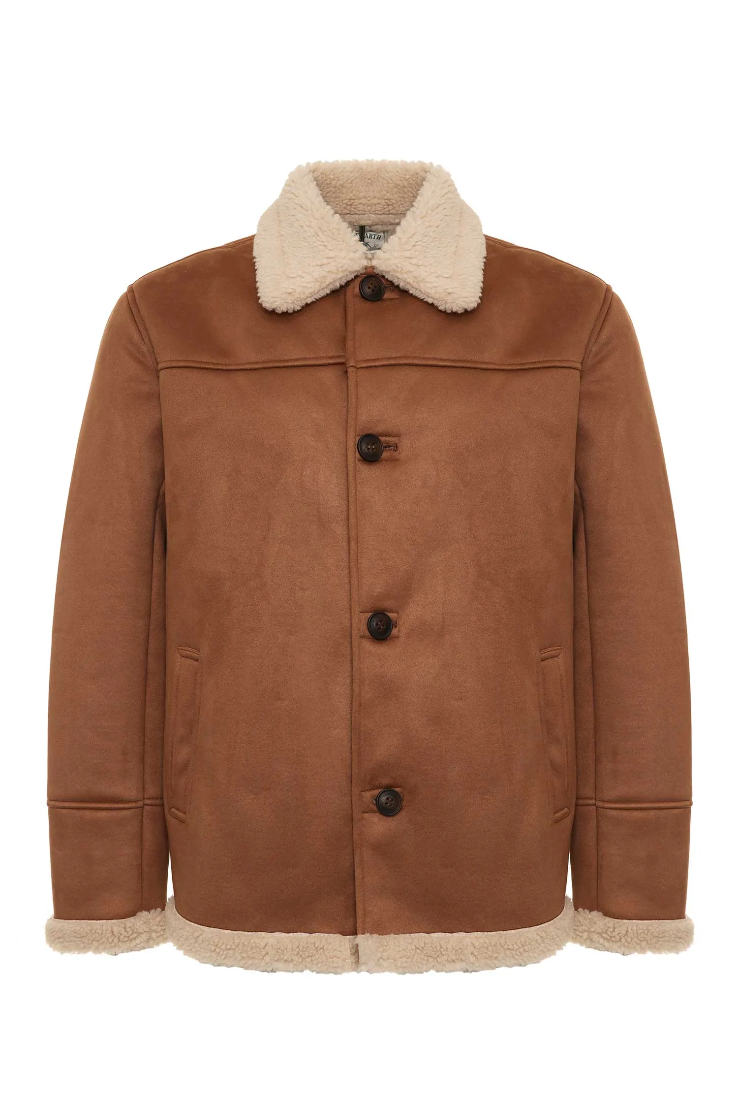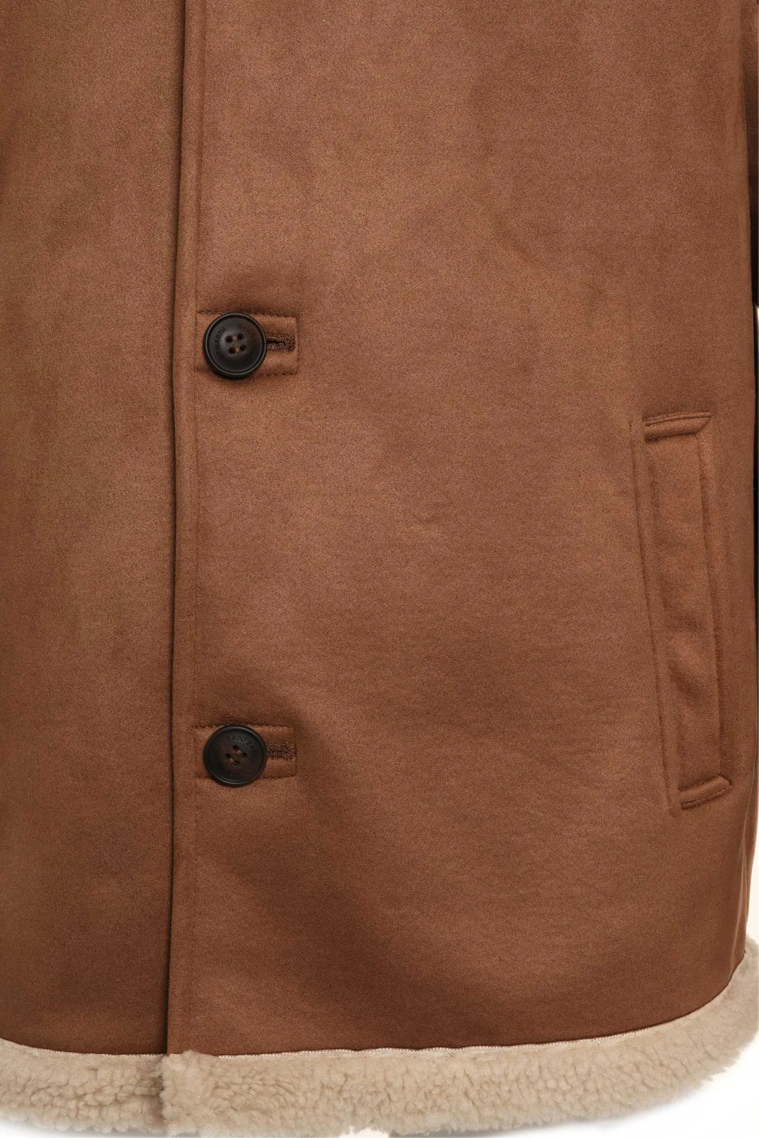 ДУБЛЁНКА KELLS КОРИЧНЕВАЯ, ВОРОТНИК С МОЛОЧНЫМ МЕХОМ