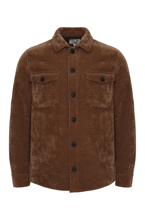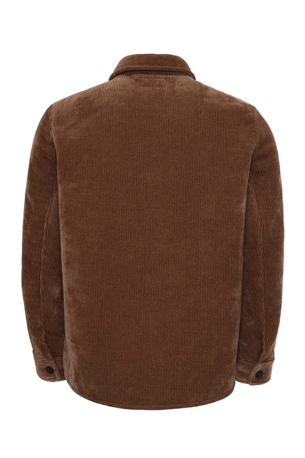 КУРТКА-РУБАШКА LANDECK CORDUROY КОРИЧНЕВАЯ, ВЕЛЬВЕТОВАЯ, ПОДКЛАДКА ИЗ ЭКОМЕХА, НАКЛАДНЫЕ КАРМАНЫ С КЛАПАНОМ, КАРМАНЫ