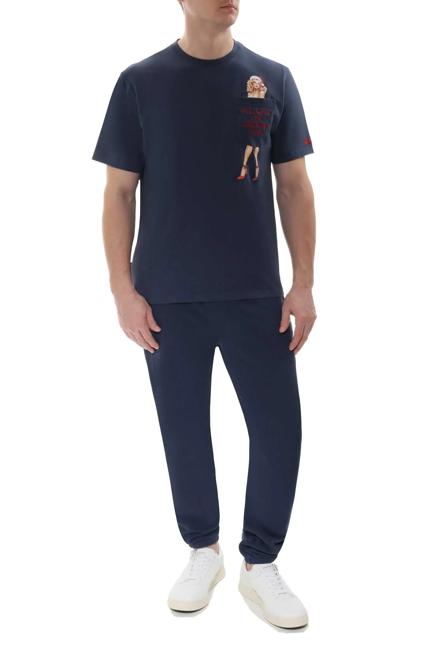 ФУТБОЛКА CONNOR WARM Т/СИНЯЯ, РИС. ДЕВУШКА В КАРМАНЕ НА ГРУДИ
