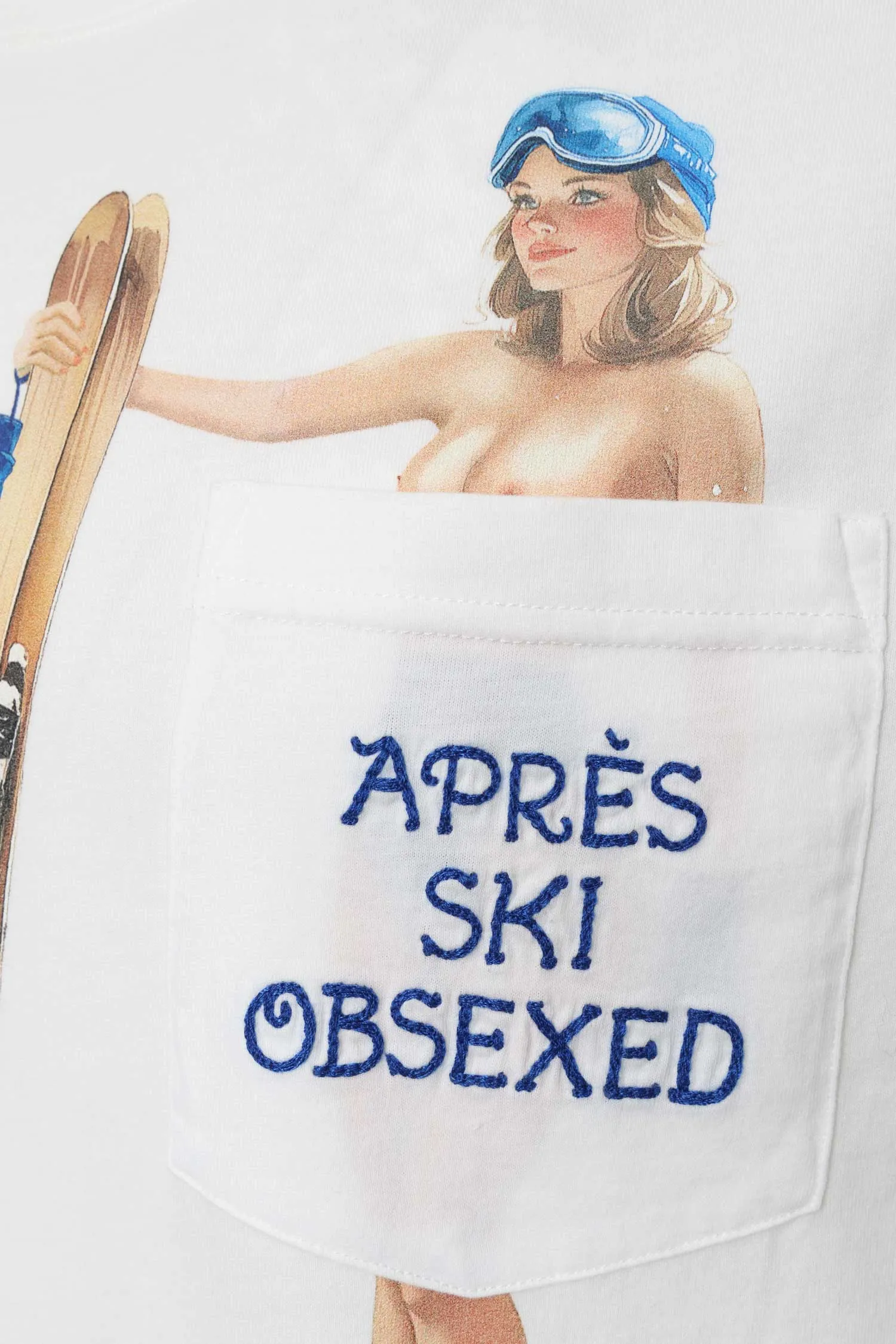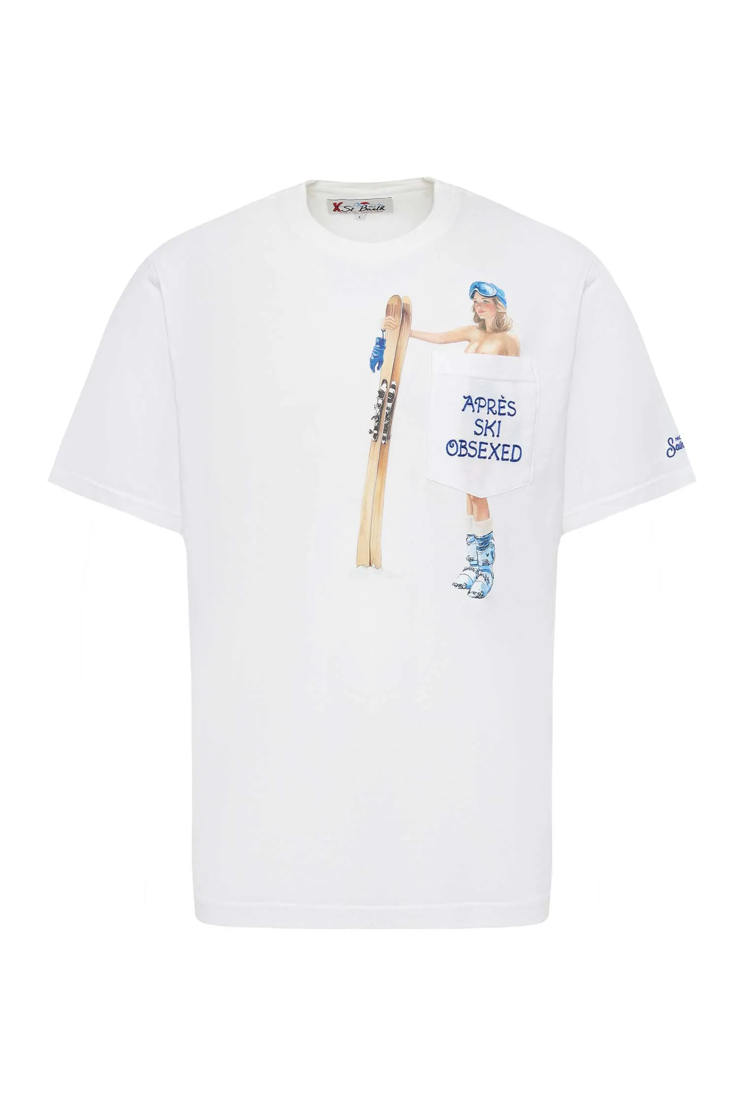 ФУТБОЛКА CONNOR WARM БЕЛАЯ, ДЕВУШКА-ЛЫЖНИЦА В КАРМАНЕ НА ГРУДИ