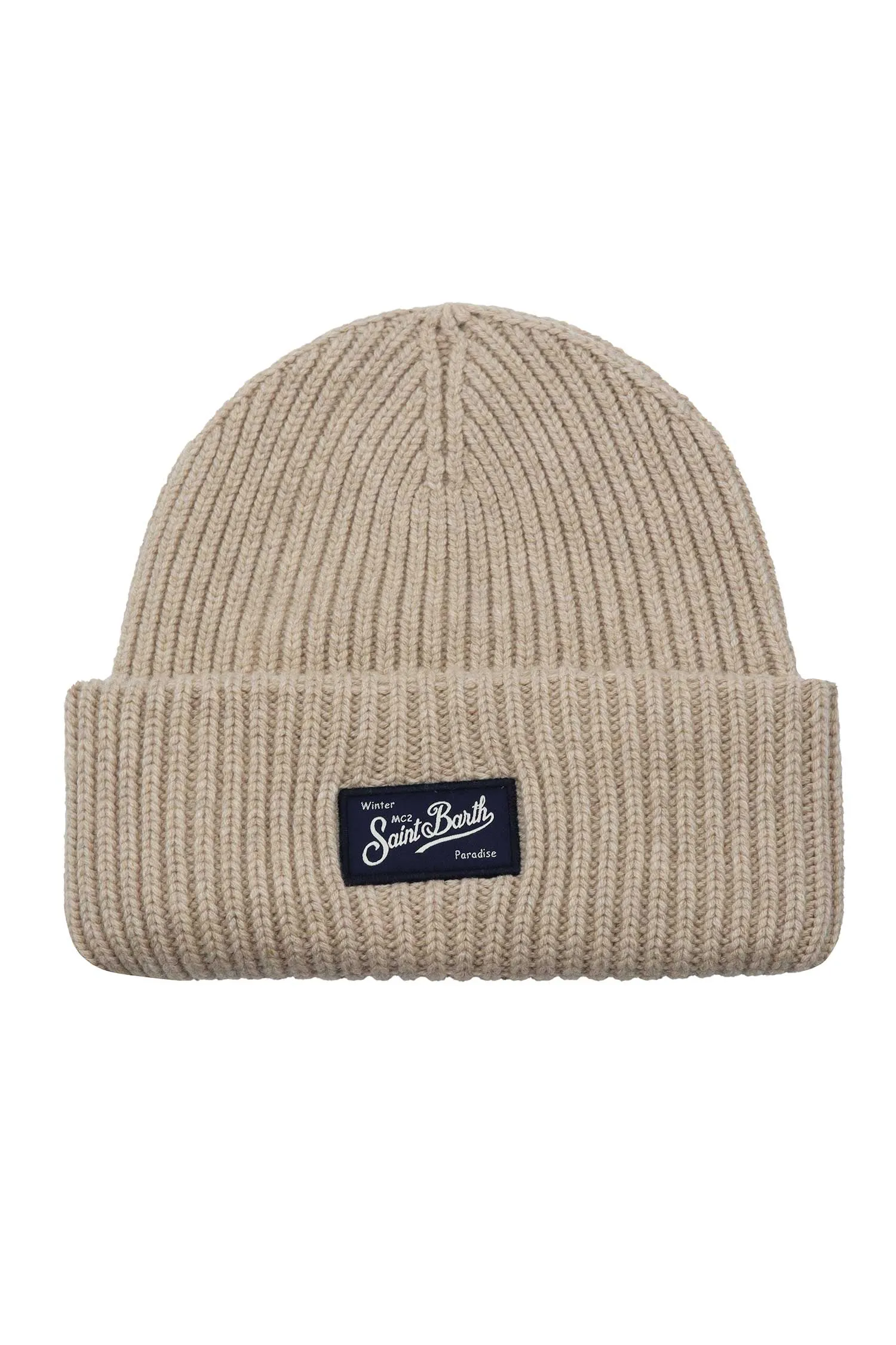 ШАПКА BERRY SBW 5 GG СВ/БЕЖЕВАЯ ШЕРСТЬ/КАШЕМИР, НА ОТВОРОТЕ Т/СИНЯЯ НАШИВКА-ЛОГО