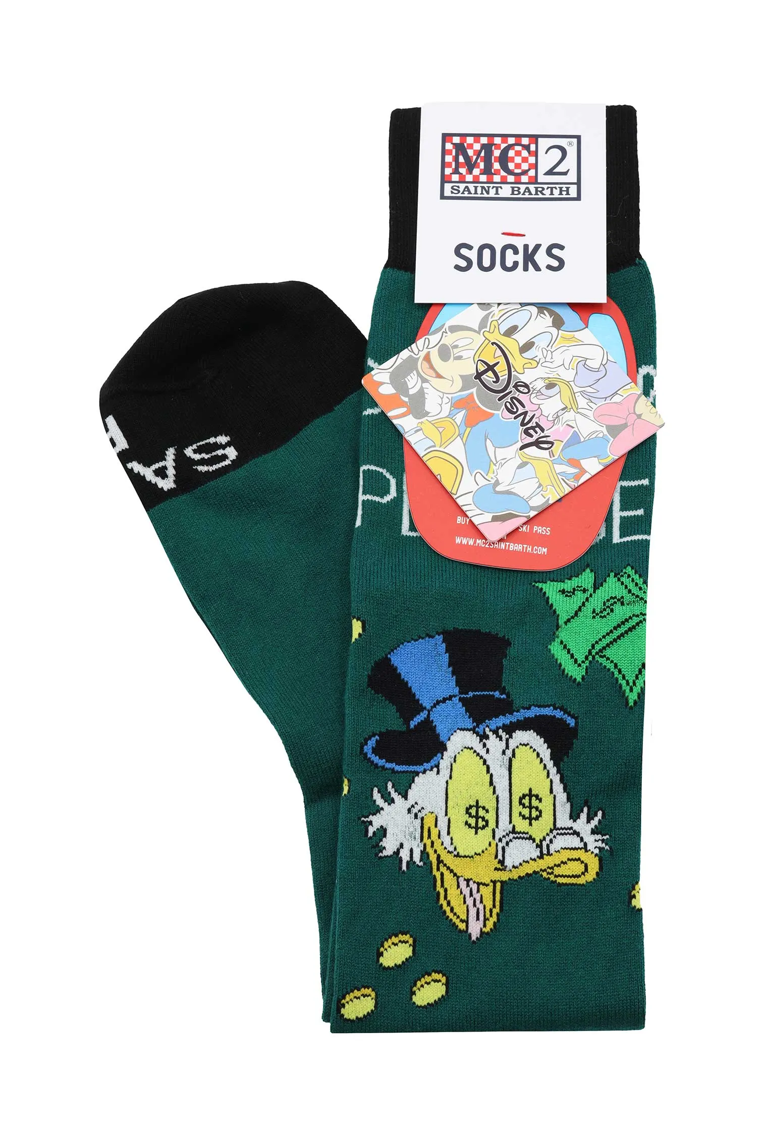НОСКИ SOX Т/ЗЕЛЁНЫЕ, ВЫСОКИЕ, ЧЁРНЫЙ КАНТ, РИС.СКРУДЖ, БЕЛАЯ НАДПИСЬ ONLY CASH PLEASE