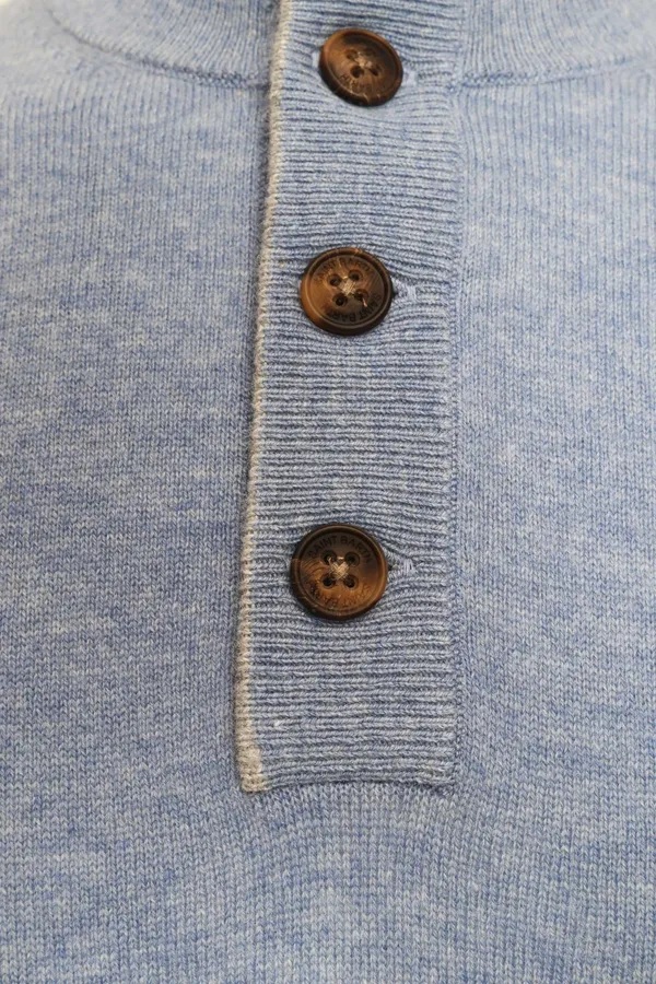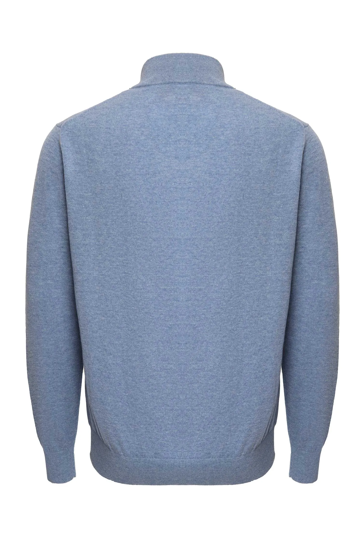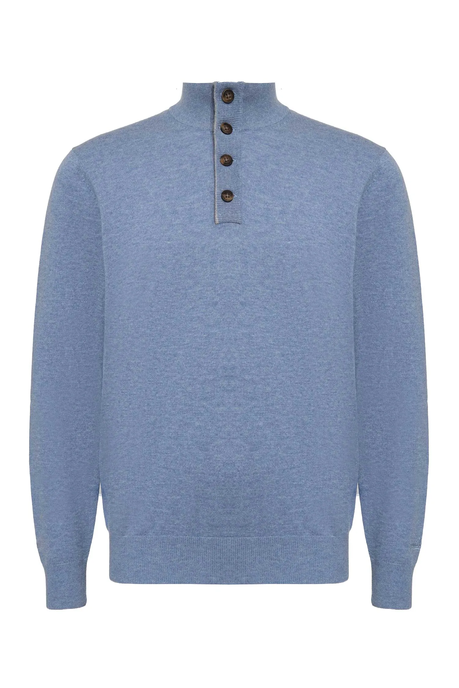ДЖЕМПЕР DORIAN MERINOCASH 12 GG ГОЛУБОЙ ШЕРСТЬ/КАШЕМИР, ВОРОТ-СТОЙКА НА ПУГОВИЦАХ