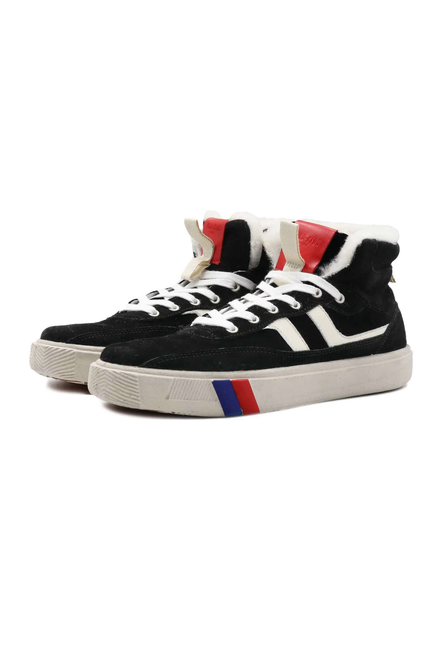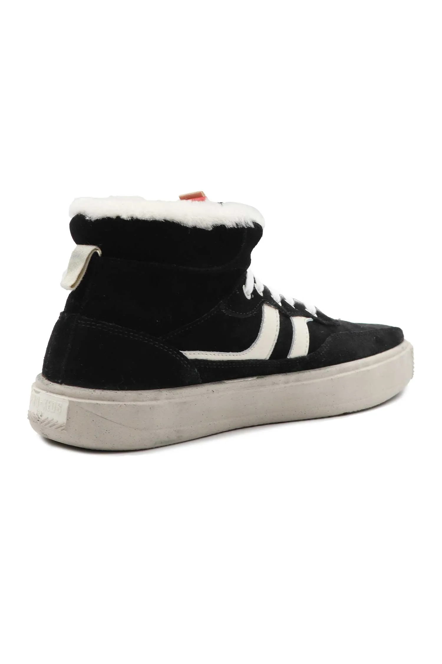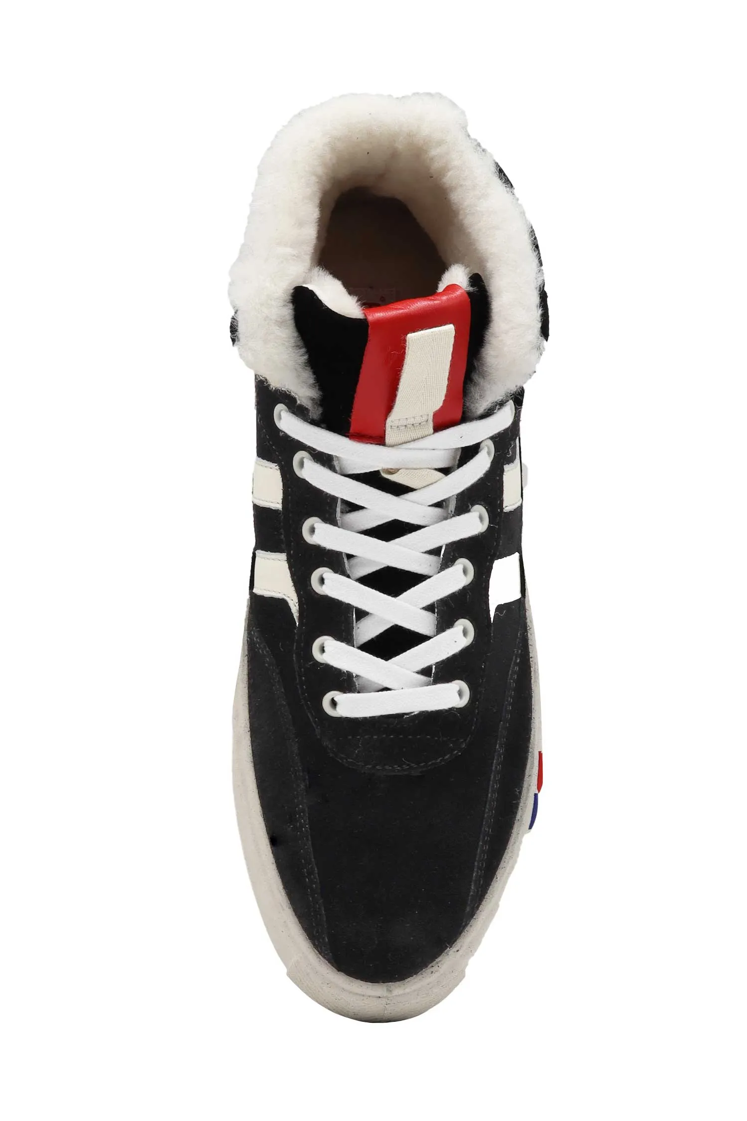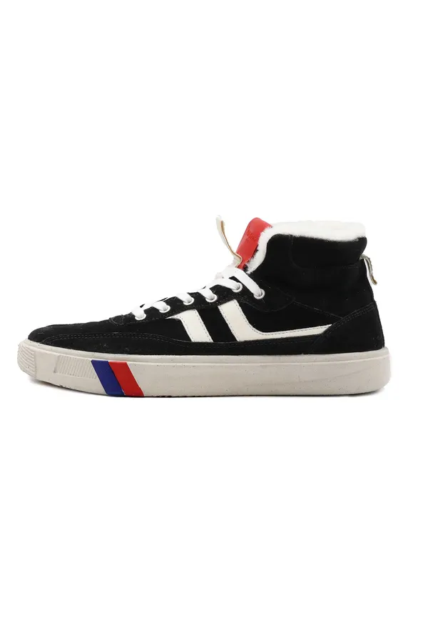 КЕДЫ ROYAL II ORBIT HIGH ЧЁРНЫЕ ЗАМША, ВЫСОКИЕ, СБОКУ БЕЛЫЕ ПОЛОСЫ, НА ЯЗЫЧКЕ КРАСНАЯ НАШИВКА-ЛОГО, БЕЛЫЙ МЕХ, К=3,5