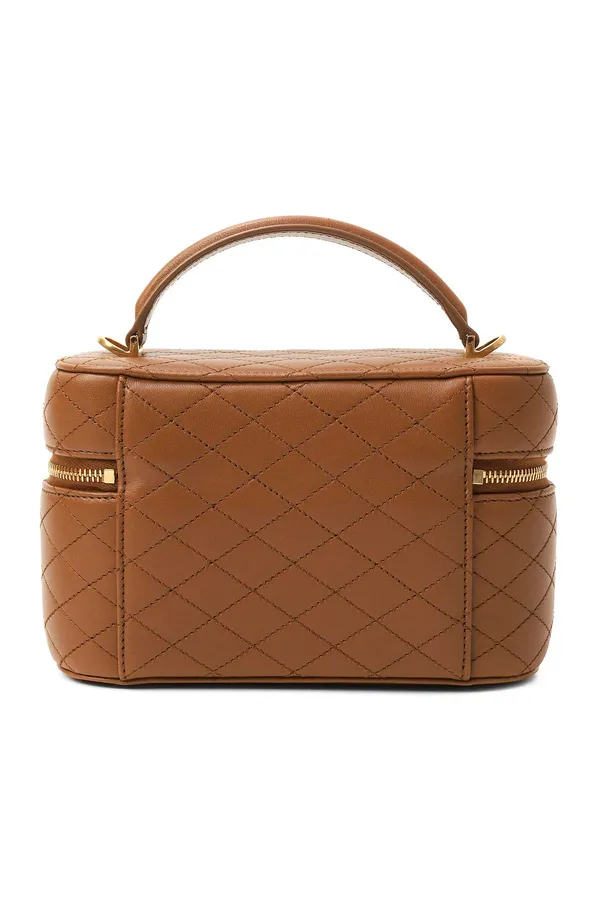 СУМКА GABY КОРИЧНЕВАЯ, СТЁГАНАЯ, МАТОВАЯ КОЖА, КРУГОВАЯ МОЛНИЯ, ЗОЛОТИСТОЕ ЛОГО, РУЧКА, РЕМЕШОК