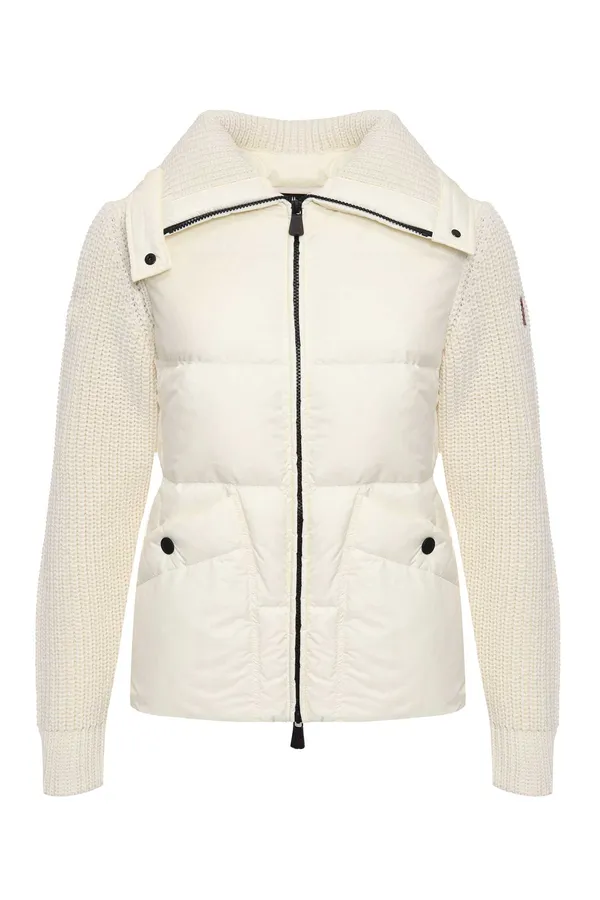 КУРТКА-ОЛИМПИЙКА МОЛОЧНАЯ, КОМБИНИР., ТРИКОТАЖНЫЙ РУКАВА, КАРМАНЫ НА КНОПКАХ, ВЫСОКИЙ ВОРОТ-СТОЙКА
