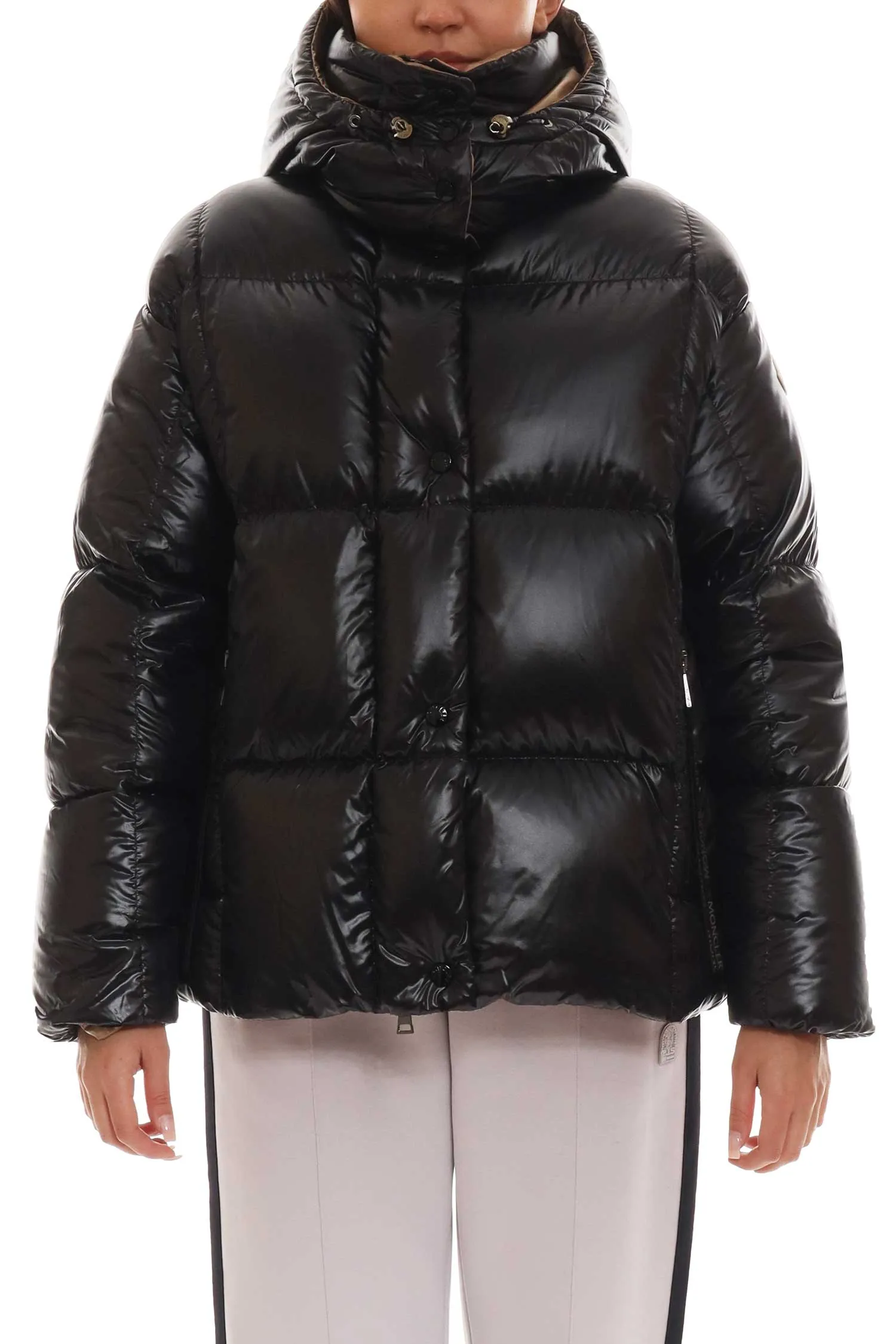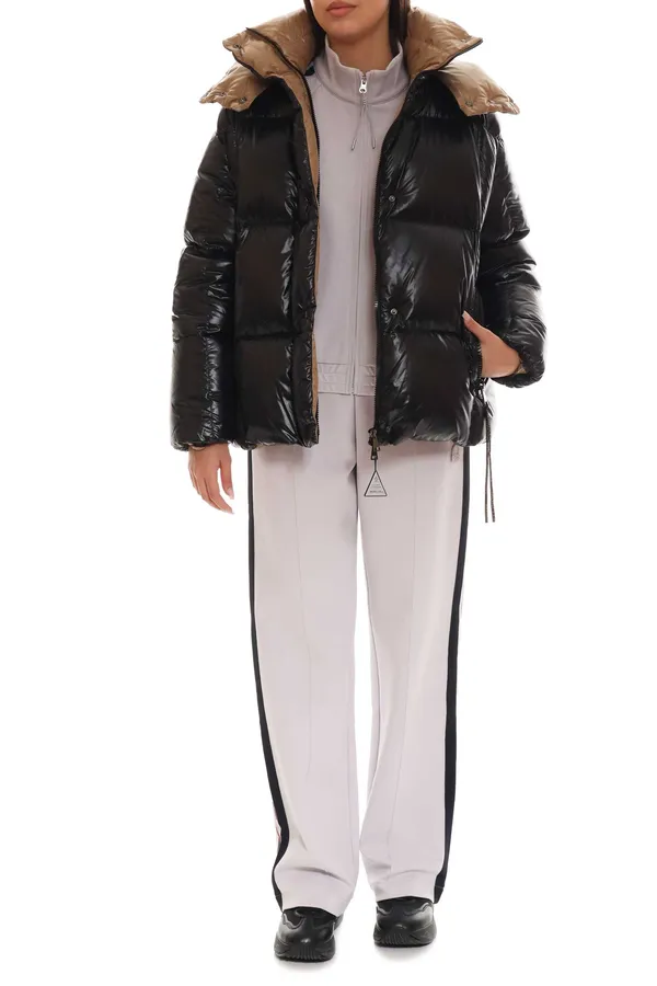 Пуховик Moncler Parana — изготовленный из фирменного нейлона с блеском, он сочетает лёгкость и высокую степень утепления благодаря пуховой набивке. Квадратная стёжка обеспечивает равномерное распределение тепла, а съёмный регулируемый капюшон добавляет практичности. Завершён логотипом бренда и функциональными деталями — карманами на молнии, эластичными манжетами и двойной застёжкой.