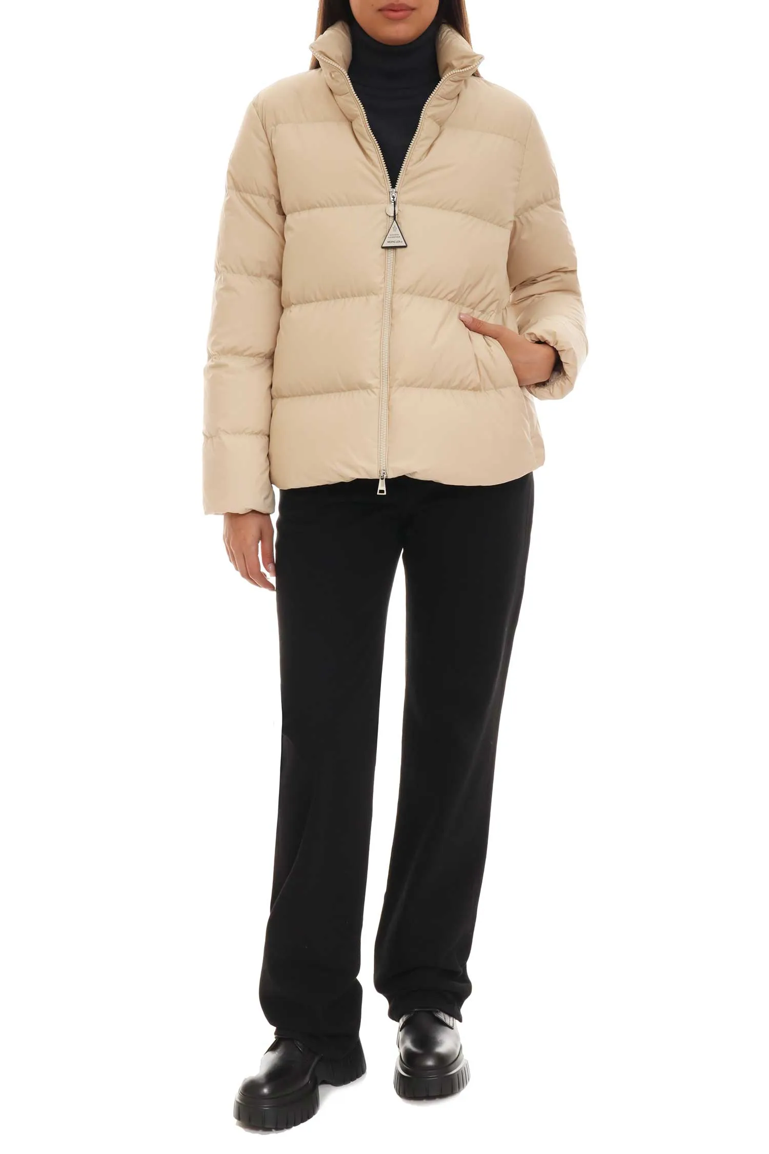 Пуховик Moncler Mauzun — короткая стёганая модель лаконичного кроя, выполненная из переработанного полиэстера с матовой отделкой. Лёгкий и тёплый, он наполнен пухом и пером, что обеспечивает комфорт в холодную погоду. Свободный силуэт позволяет надевать его поверх трикотажа или толстовок, а удобные карманы на молнии и регулируемый подол делают куртку практичной для повседневного использования.