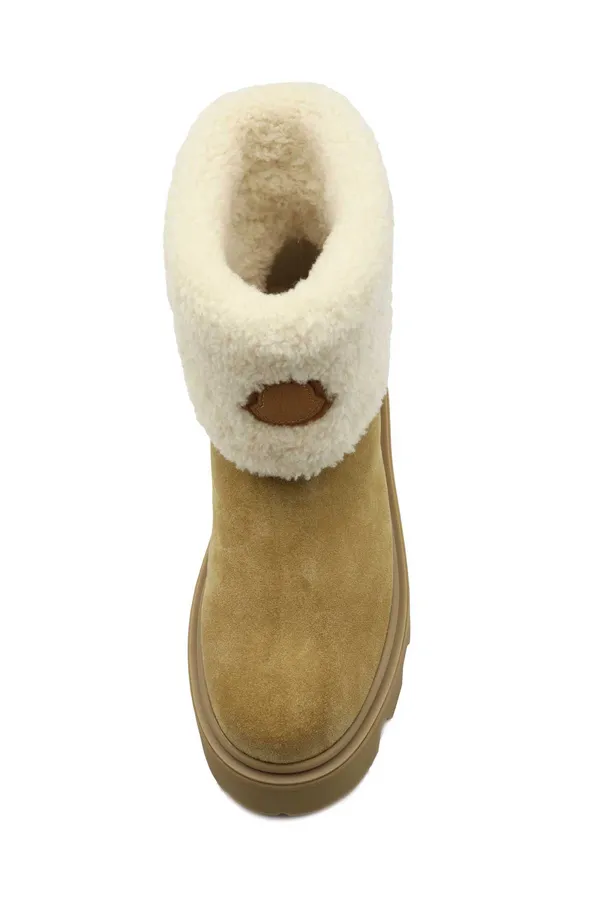 П/САПОГИ AUREA БЕЖЕВЫЕ ЗАМША С МЕХОВЫМ ОТВОРОТОМ, ТРАКТОРАНАЯ ПОДОШВА, ЛОГО, К=4