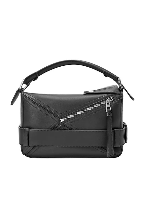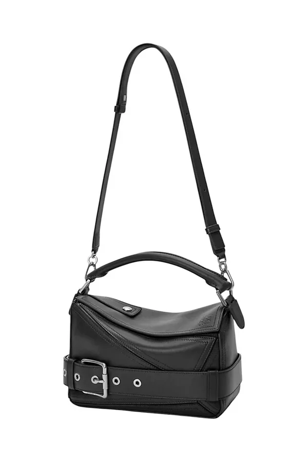 СУМКА PUZZLE BIKER SMALL ЧЁРНАЯ, КОЖАНАЯ, С КЛАПАНОМ, СЗАДИ КАРМАН НА МОЛНИИ, СЪЁМНЫЙ РЕМЕНЬ, РУЧКА, РЕМЕШОК