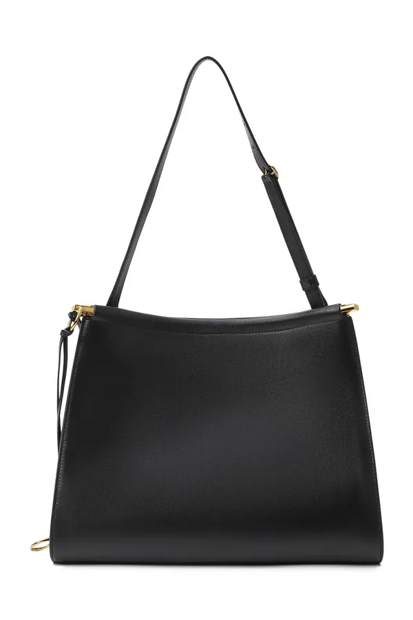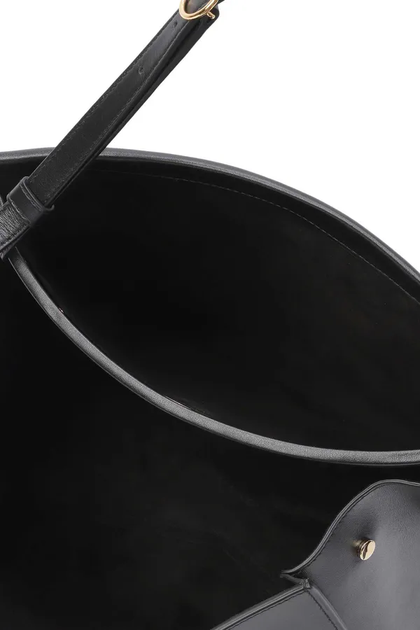 СУМКА LE CLICK MEDIUM ЧЁРНАЯ, ГЛЯНЦЕВАЯ КОЖА, МАГНИТНАЯ ЗАСТЁЖКА, БРЕЛОК С ЗОЛОТИСТЫМИ КОЛЬЦАМИ, РЕГУЛИРУЕМЫЙ РЕМЕШОК