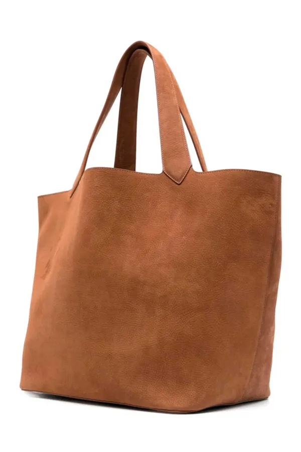 Большая сумка-тоут из мягкого нубука создана в лаконичном и функциональном формате. Модель оснащена двумя удобными ручками, открытым верхом и вместительным основным отделением. В комплект входит съёмный кошелёк на молнии, выполненный из той же высококачественной телячьей кожи. Сделано в Италии.