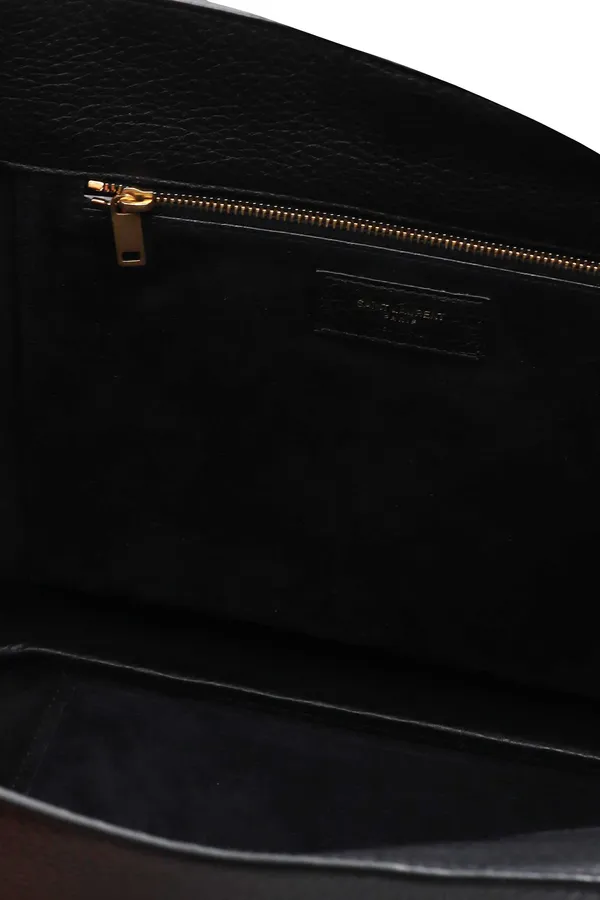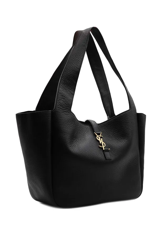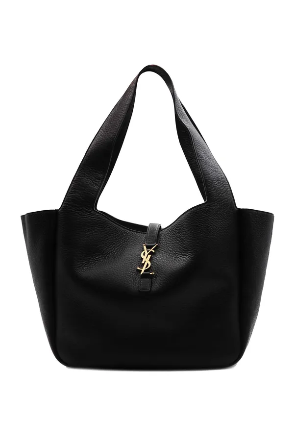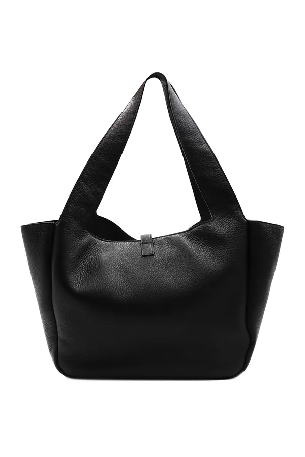 СУМКА-ТОУТ LE 5 A7 BEA ЧЁРНАЯ, ЗЕРНИСТАЯ КОЖА, ПЕРЕКИДНАЯ ЗОЛОТИСТАЯ ЗАСТЁЖКА-ЛОГО, РУЧКИ