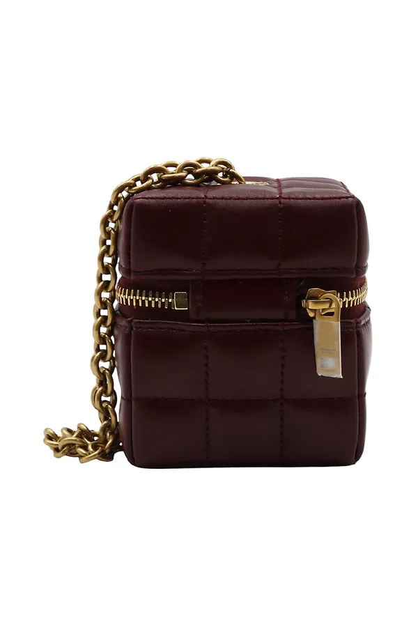 СУМКА CASSANDRE MINI БОРДОВАЯ, СТЁГАНАЯ, БЛЕСТЯЩАЯ КОЖА, КРУГОВАЯ МОЛНИЯ, ЗОЛОТИСТОЕ ЛОГО, ЦЕПОЧКА НА ЗАПЯСТЬЕ