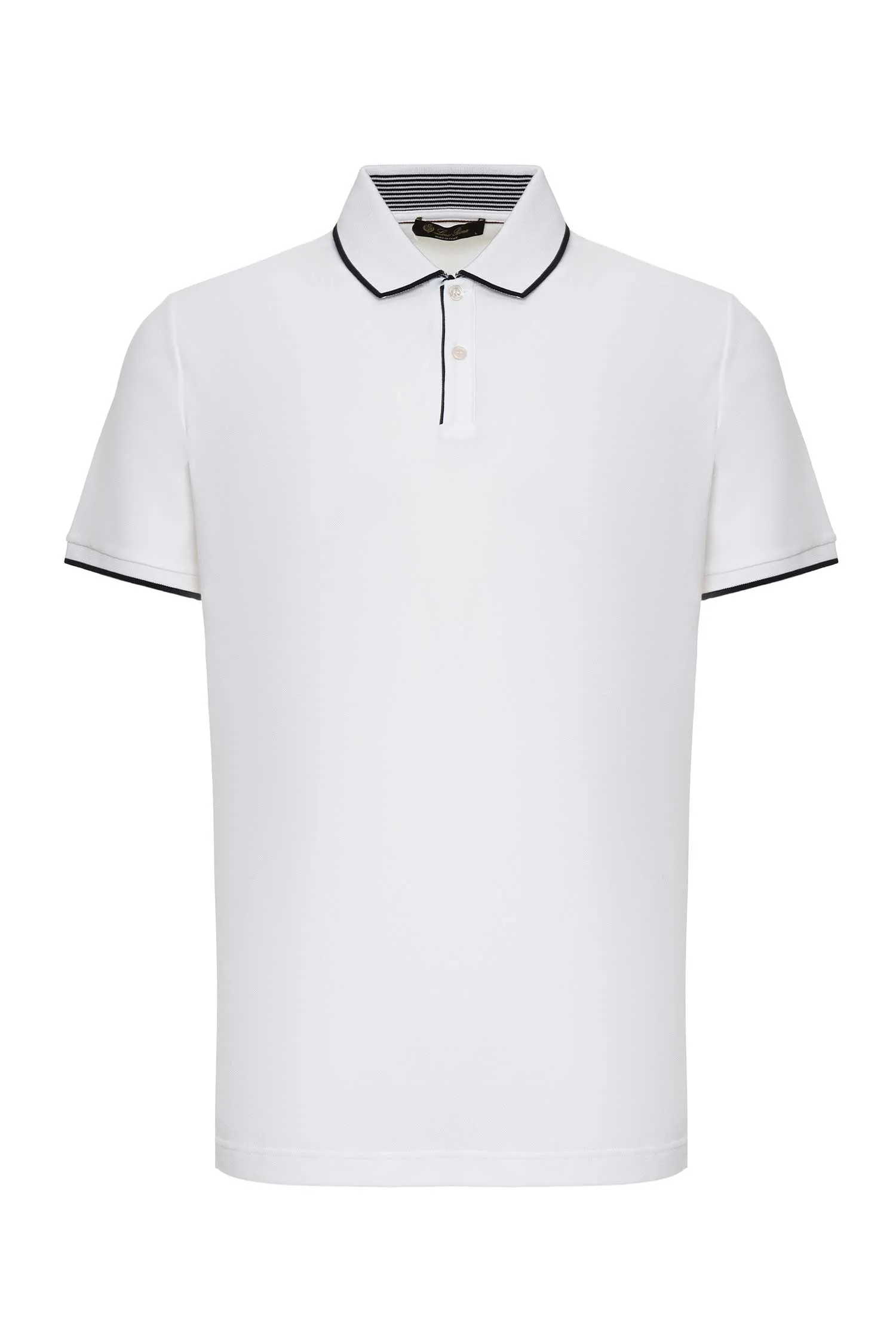 ПОЛО BRENTWOOD БЕЛОЕ ПИКЕ, ЧЁРНАЯ ПОЛОСА НА ВОРОТНИКЕ И МАНЖЕТАХ