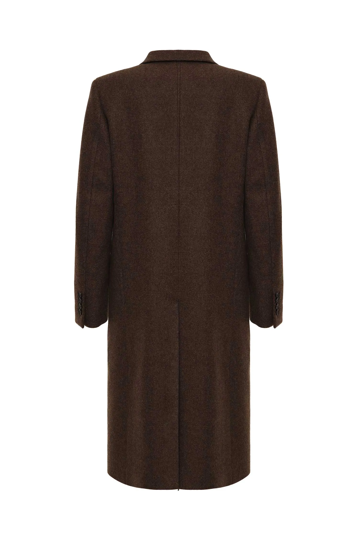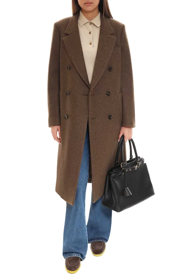 ПАЛЬТО TUCKER DB КОРИЧНЕВОЕ ШЕРСТЬ/КАШЕМИР, ДВУБОРТНОЕ, КАРМАНЫ, СЗАДИ РАЗРЕЗ