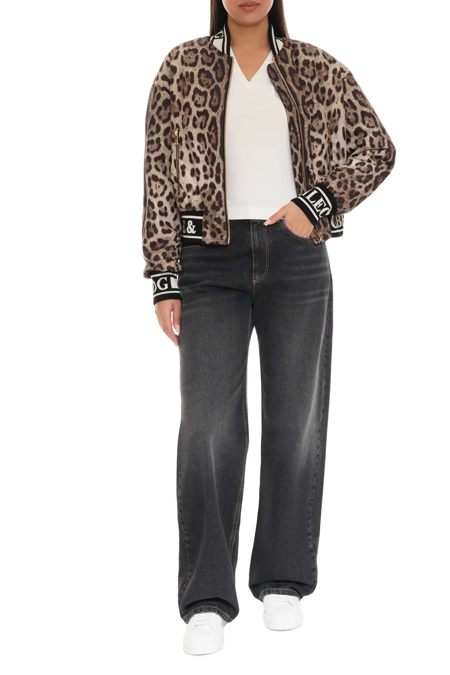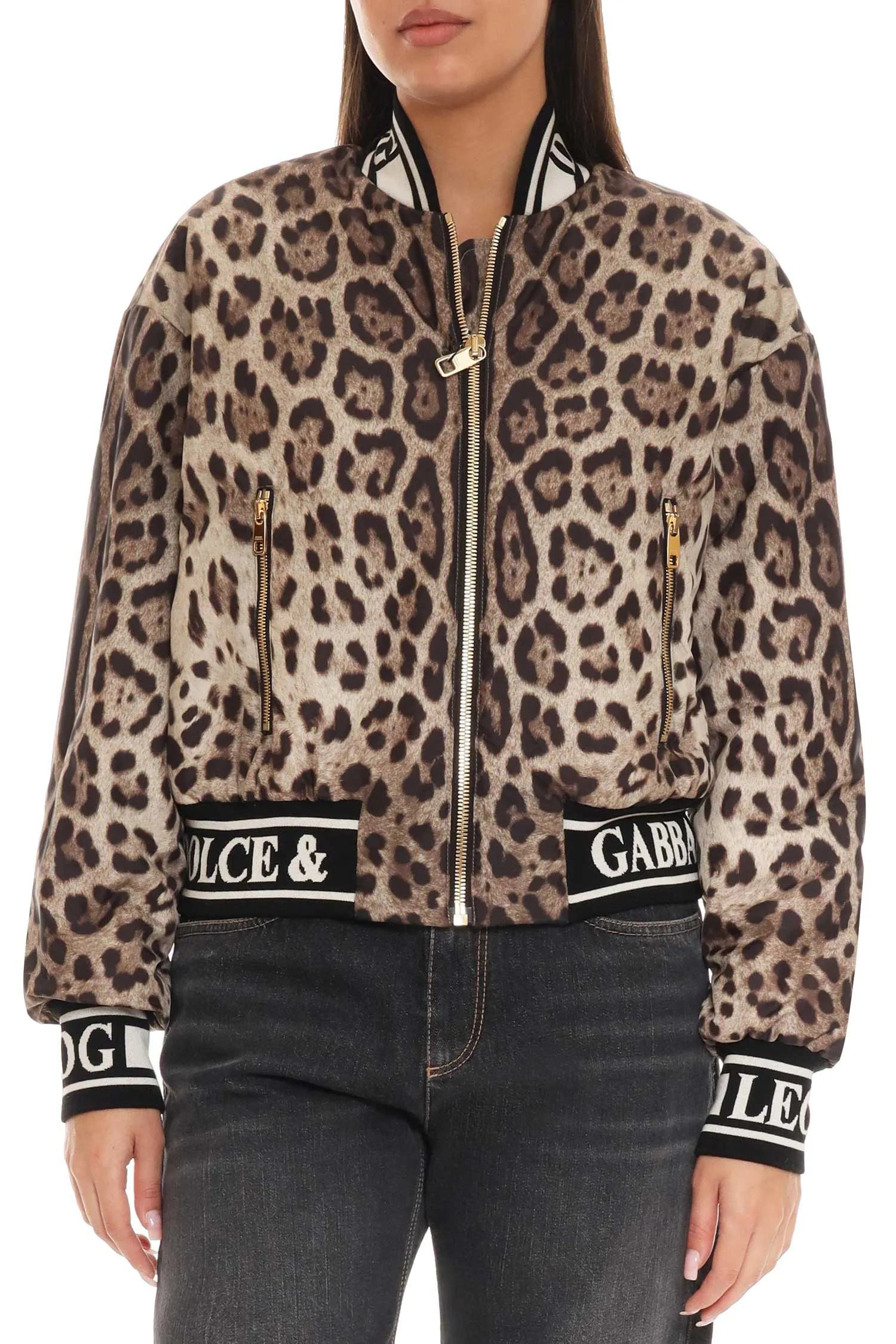 Укороченный бомбер Dolce&Gabbana с леопардовым принтом — эффектное переосмысление архивного кода бренда. Изделие в тёплой бежево-коричневой гамме выполнено из лёгкого полиэстера с мягкой подкладкой и утеплителем. Воротник-шалька, молния, карманы на молнии и эластичные трикотажные манжеты с контрастной логотипной лентой подчёркивают дерзкий характер модели.