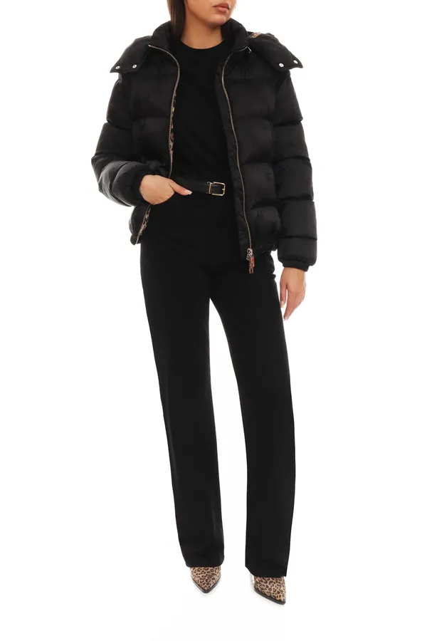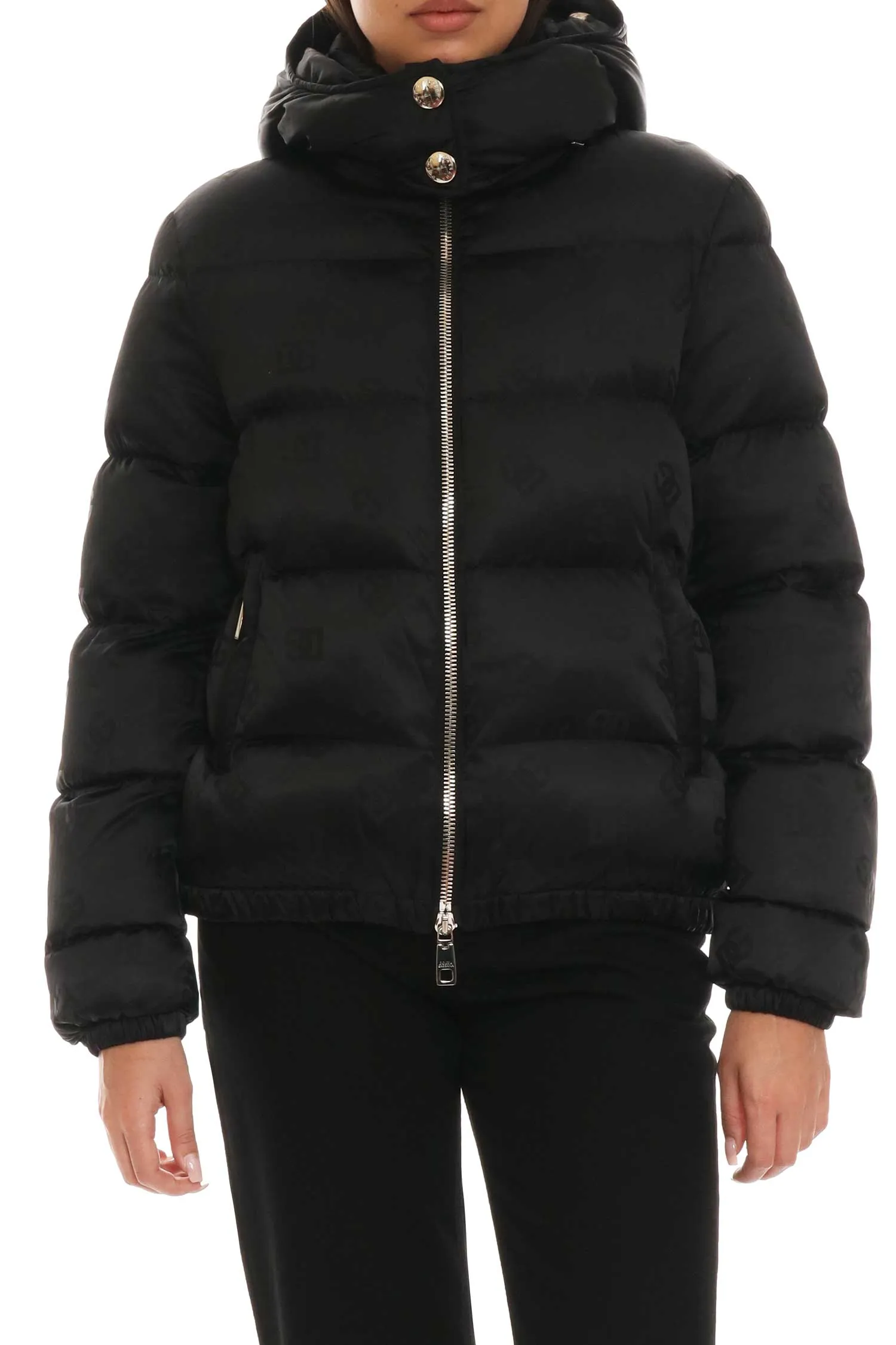 DOLCE&GABBANA КУРТКА-ПУХОВИК ЧЕРНАЯ В ЛОГО DG, С СИНТЕТ.НАПОЛН., УКОРОЧЕННАЯ, ЛЕОПАРДОВАЯ ПОДКЛАДКА, ОТСТЁГИВ.КАПЮШОН