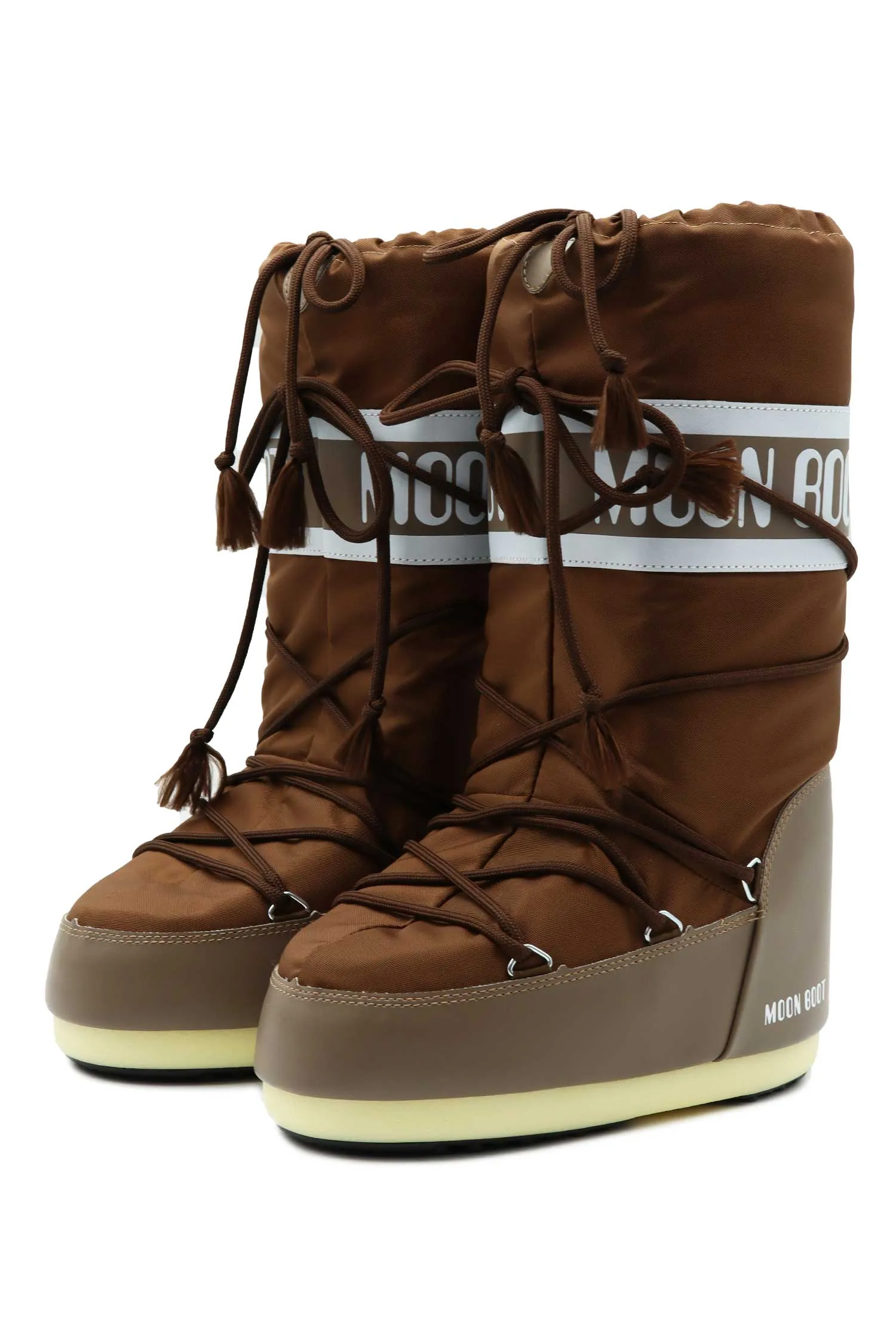 МУНБУТЫ ICON КОРИЧНЕВЫЕ НЕЙЛОН, ВЫСОКИЕ, ШНУРОВКА, СВ/СЕРАЯ ЛОГО-НАДПИСЬ