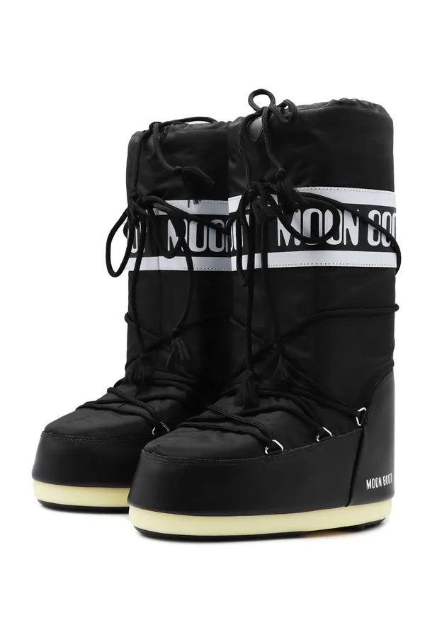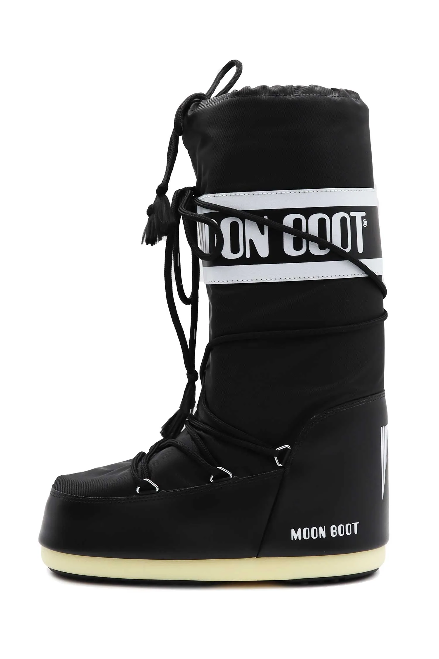 МУНБУТЫ ICON ЧЁРНЫЕ НЕЙЛОН, ВЫСОКИЕ, ШНУРОВКА, СВ/СЕРАЯ ЛОГО-НАДПИСЬ