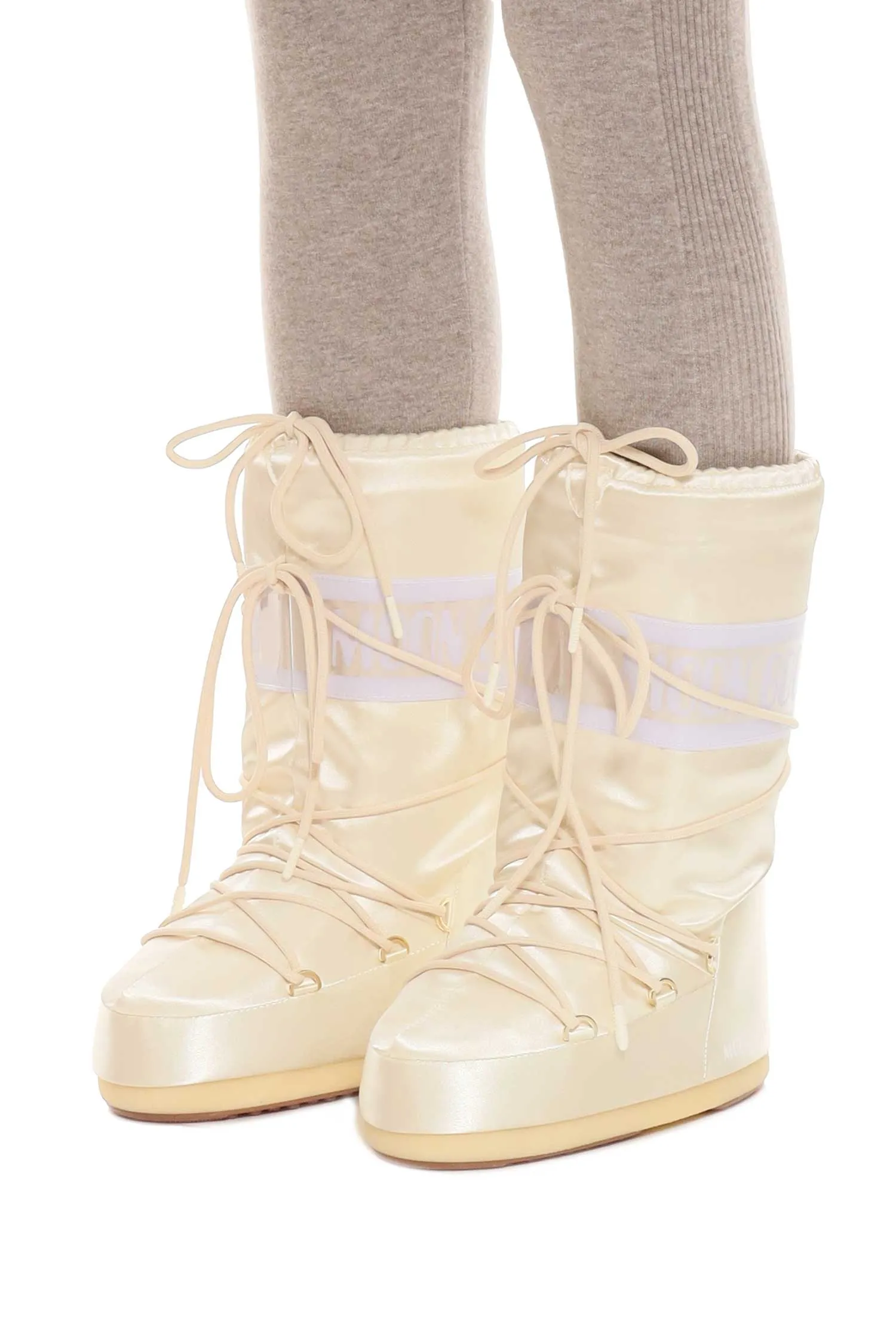 МУНБУТЫ ICON PEARLY МОЛОЧНЫЕ АТЛАС, ВЫСОКИЕ, ШНУРОВКА, СВ/СЕРАЯ ЛОГО-НАДПИСЬ