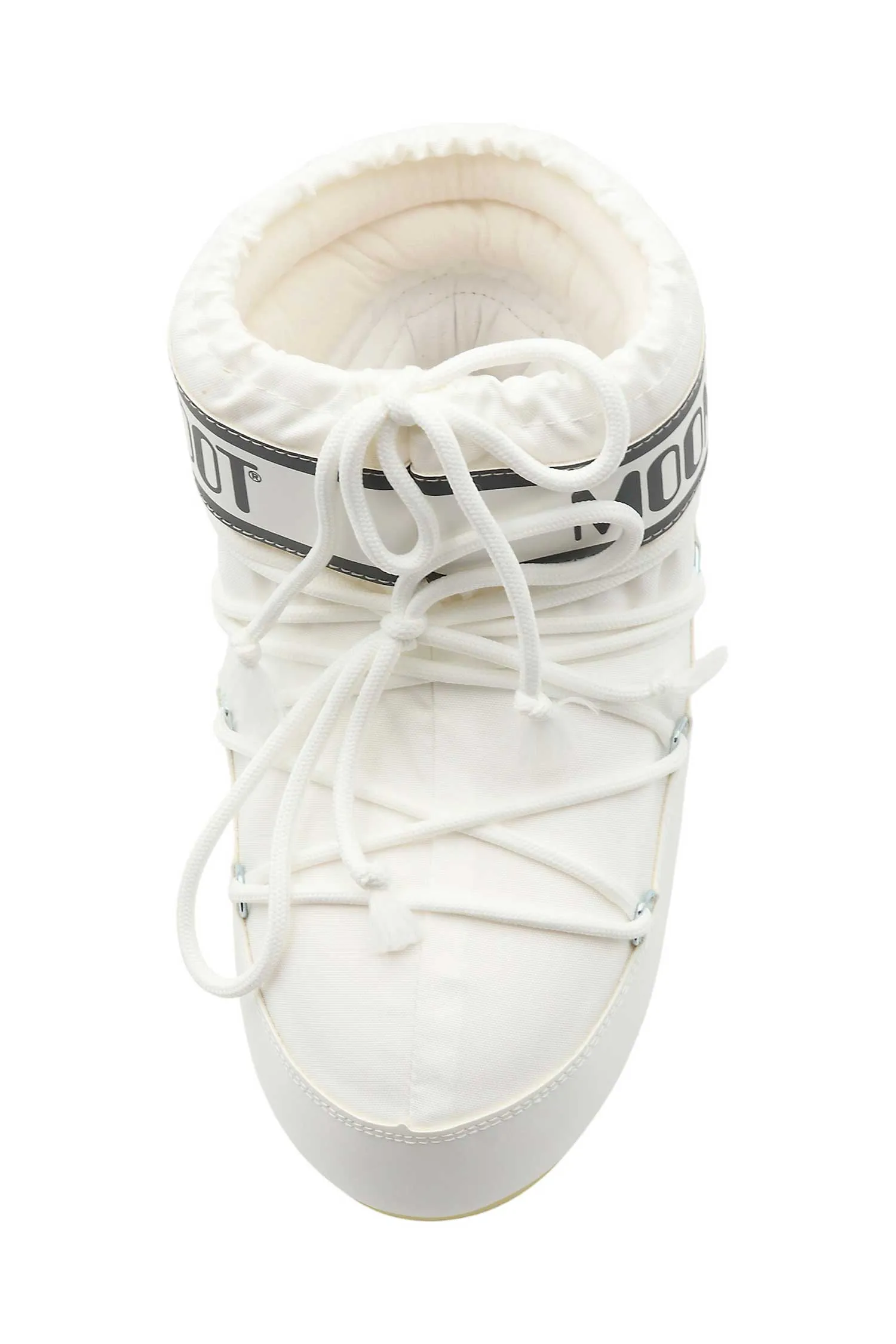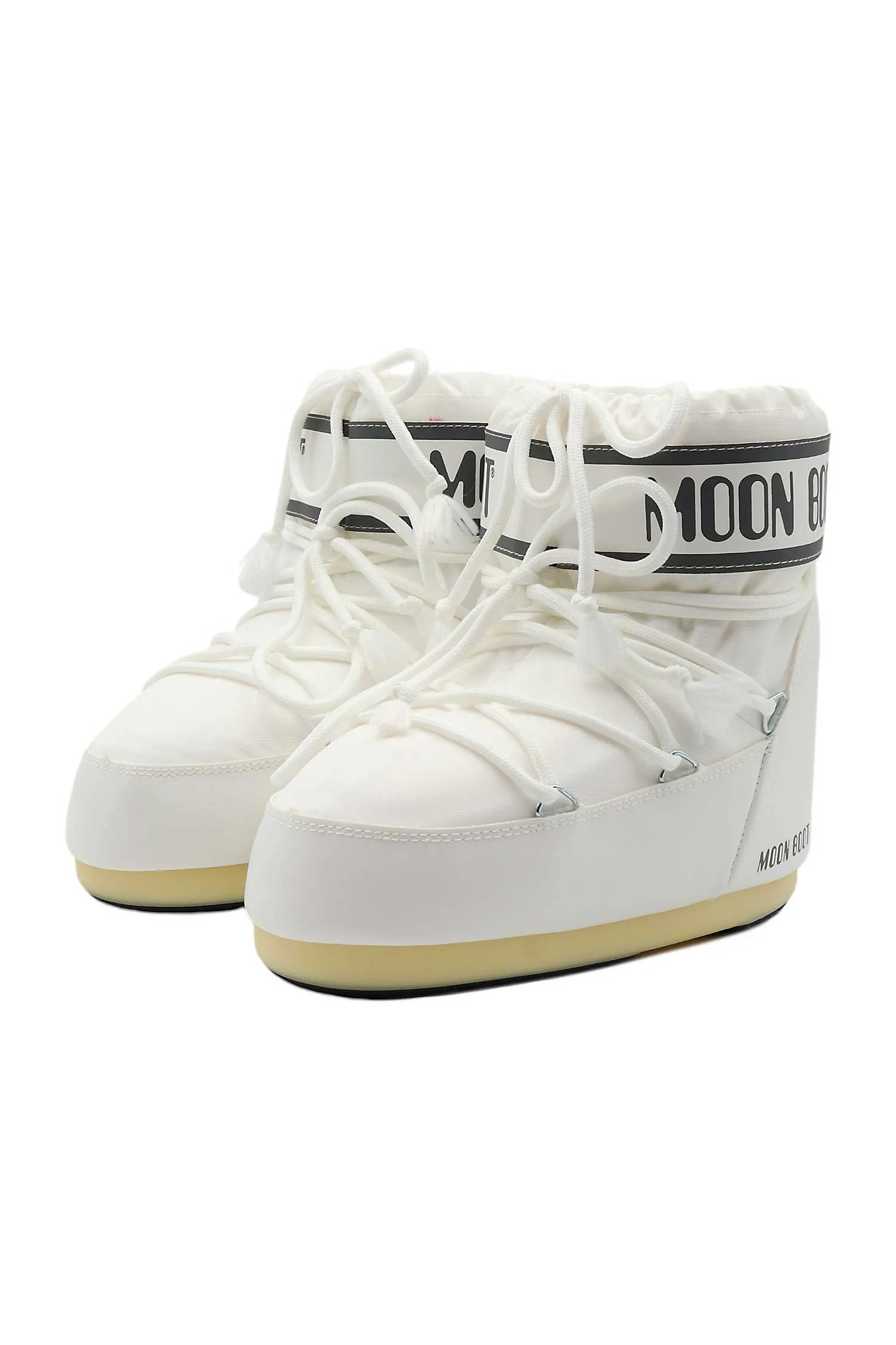 МУНБУТЫ ICON LOW БЕЛЫЕ НЕЙЛОН, НИЗКИЕ, ШНУРОВКА, СЕРАЯ ЛОГО-НАДПИСЬ