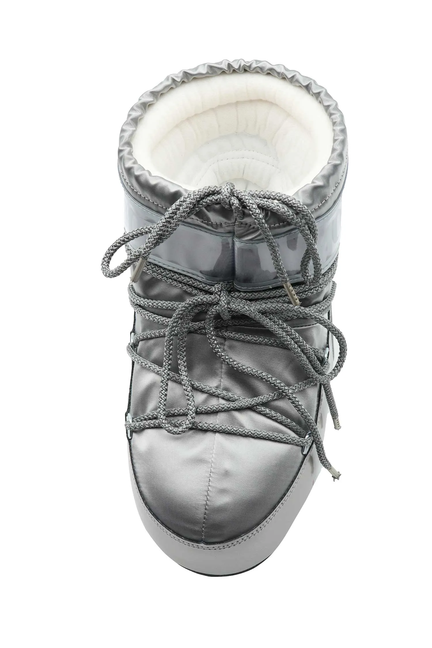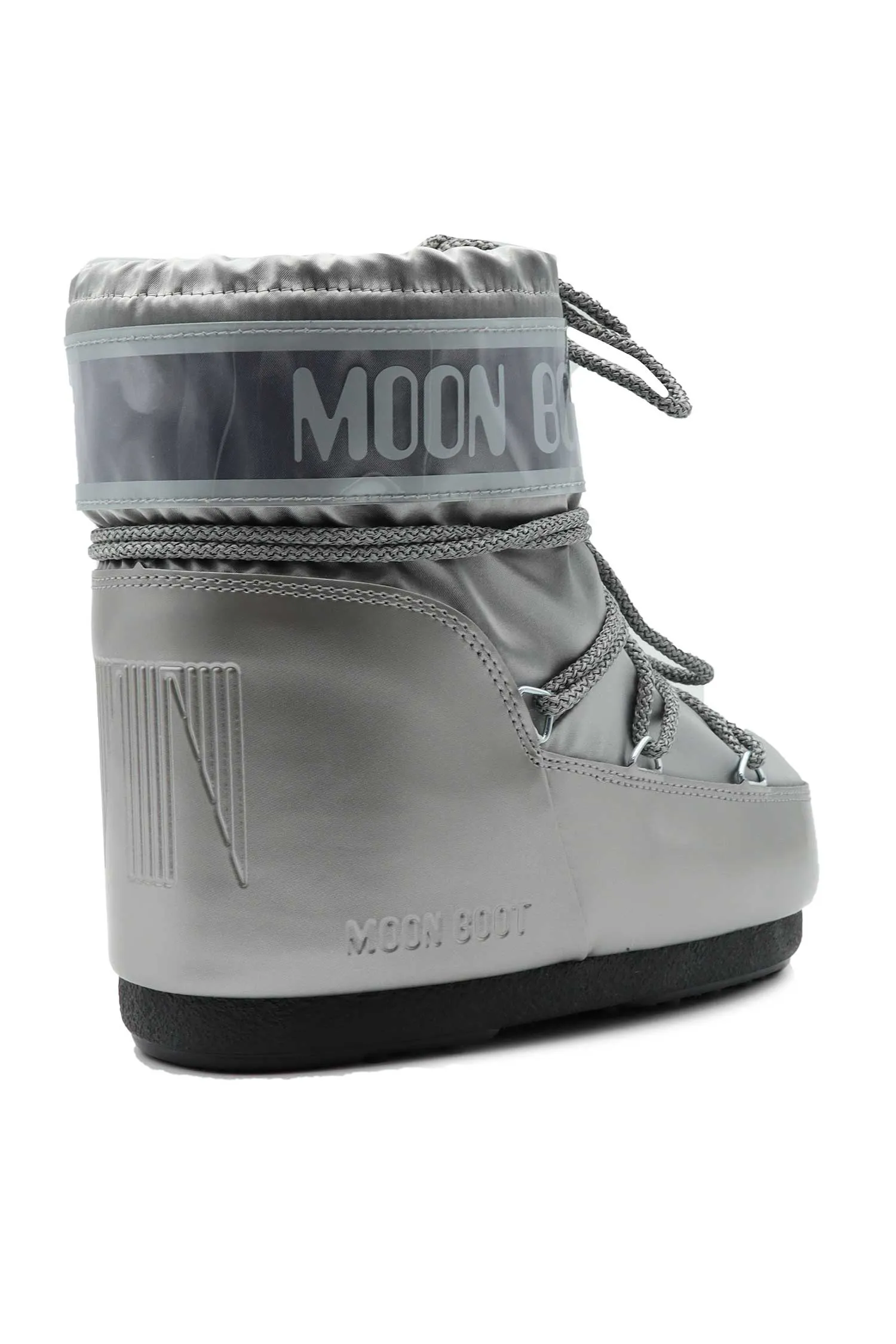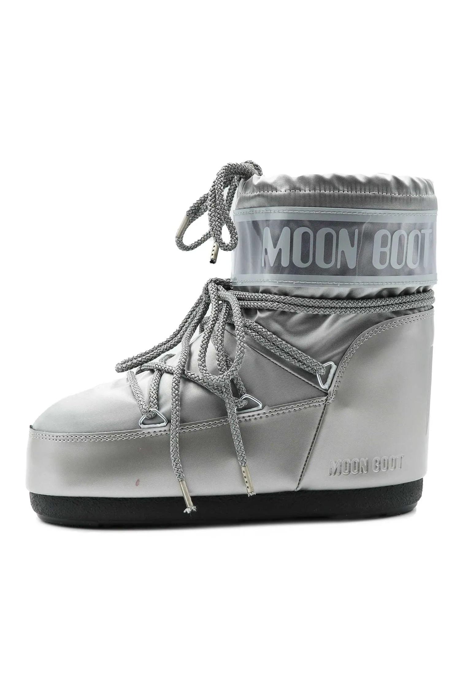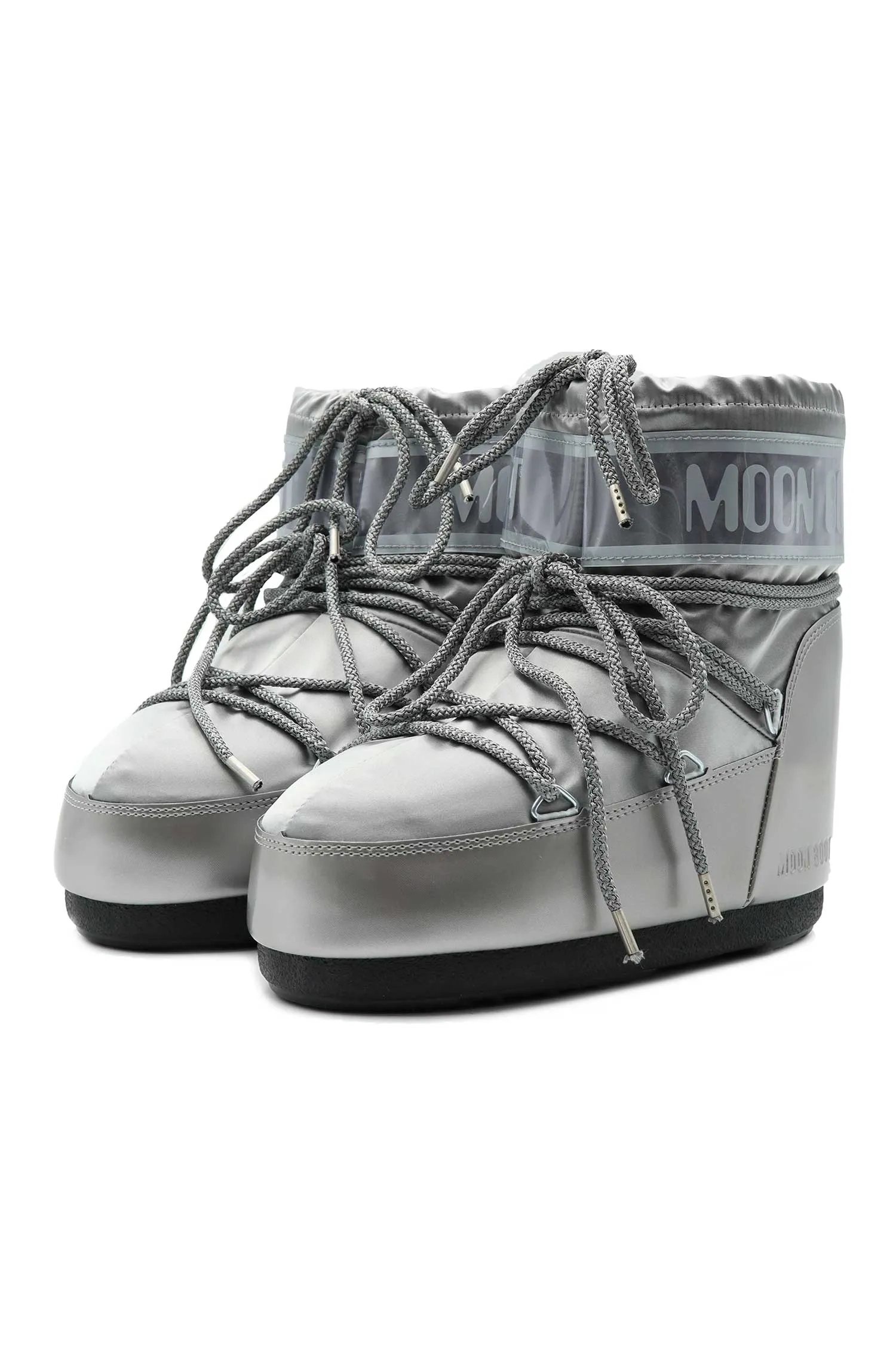 МУНБУТЫ ICON LOW GLANCE СЕРЕБРИСТЫЕ, АТЛАСНЫЕ, НИЗКИЕ, ШНУРОВКА, ЛОГО-НАДПИСЬ