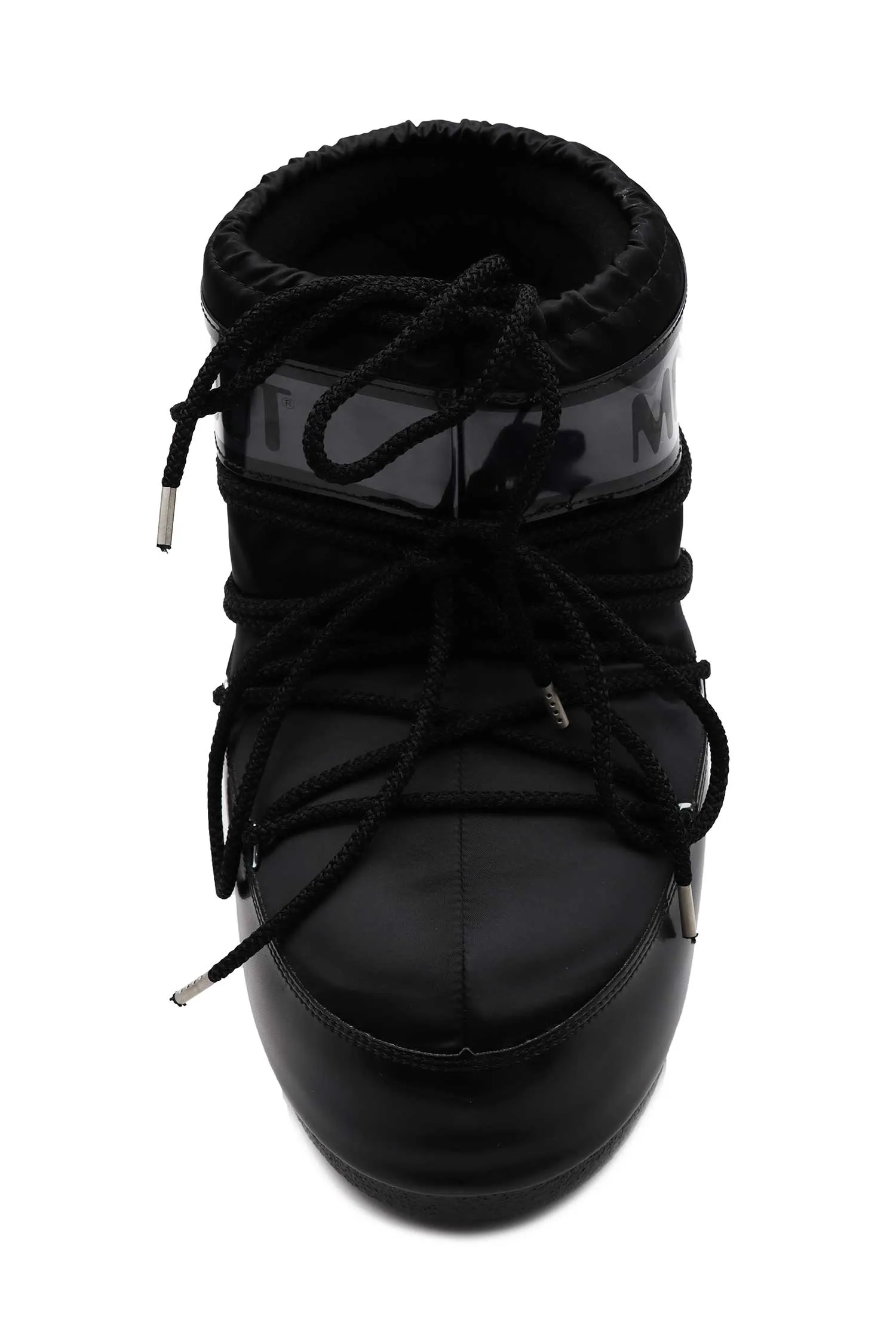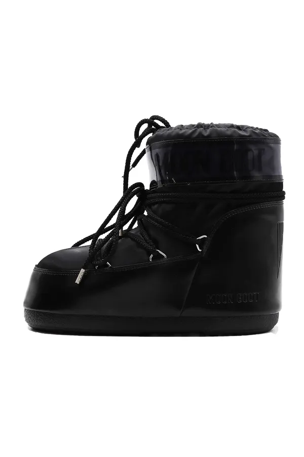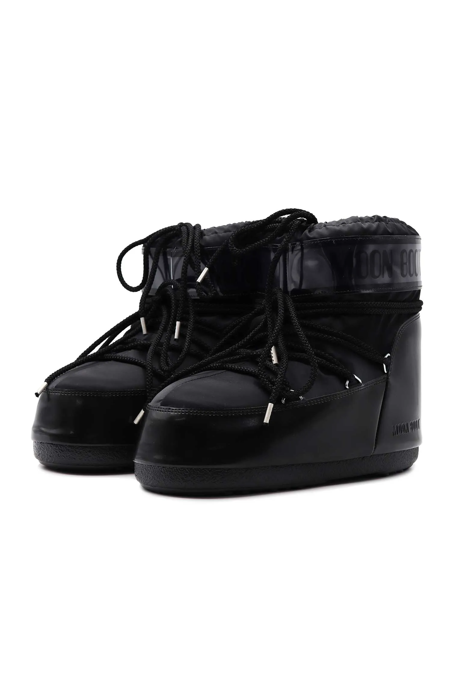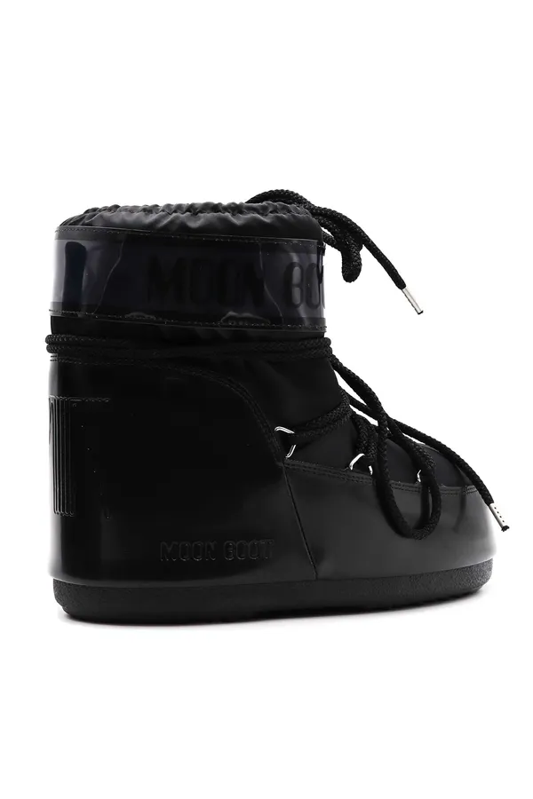 МУНБУТЫ ICON LOW GLANCE ЧЁРНЫЕ АТЛАС, НИЗКИЕ, БЛЕСТЯЩАЯ ПЯТКА И КАНТ, ШНУРОВКА, ЛОГО-НАДПИСЬ
