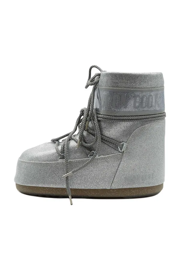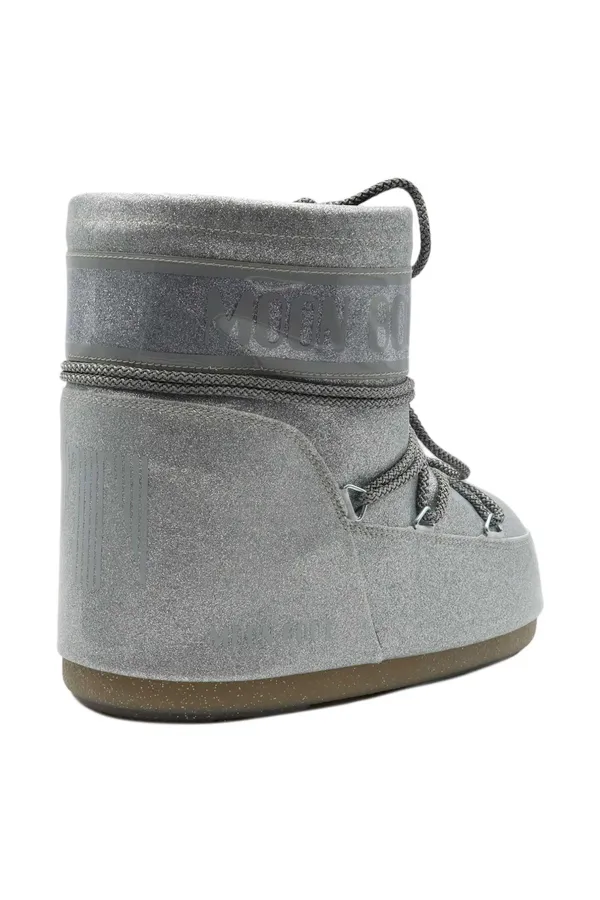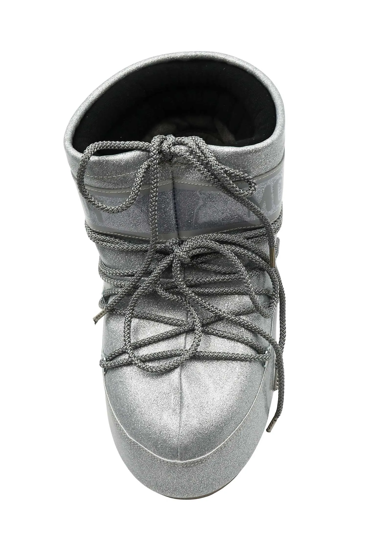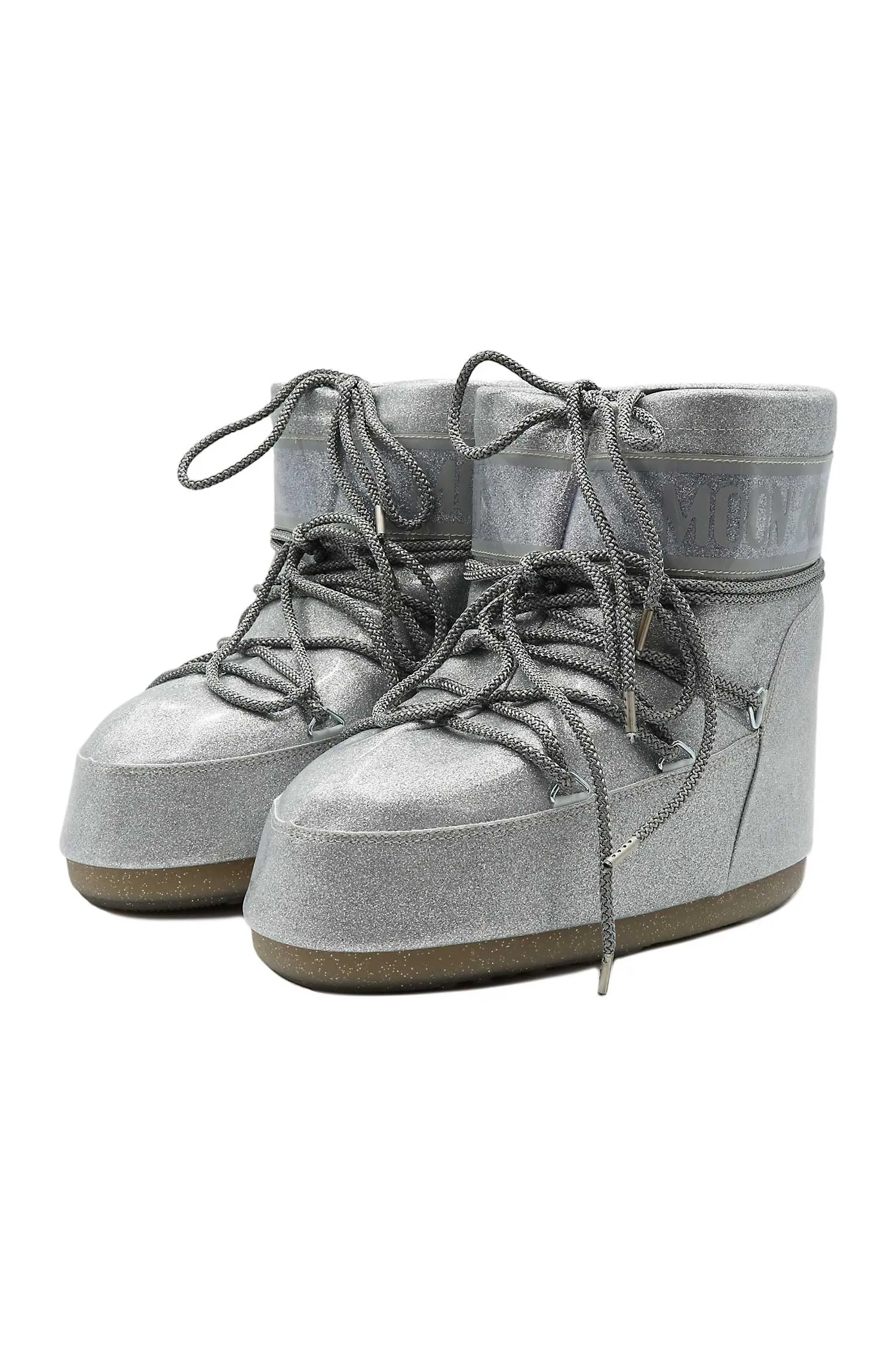 МУНБУТЫ ICON LOW GLITTER СЕРЕБРИСТЫЙ МЕТАЛЛИК, НИЗКИЕ, ШНУРОВКА, ЛОГО-НАДПИСЬ