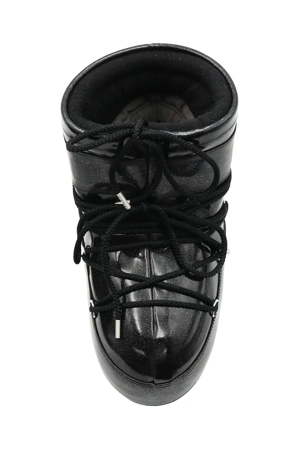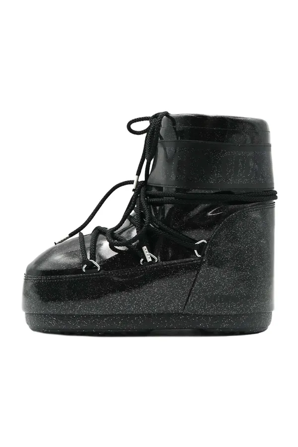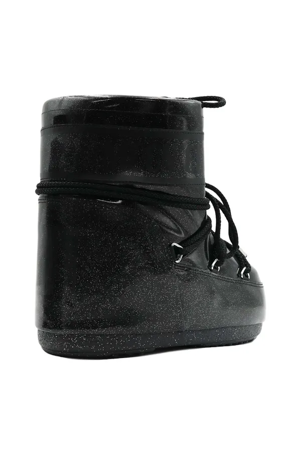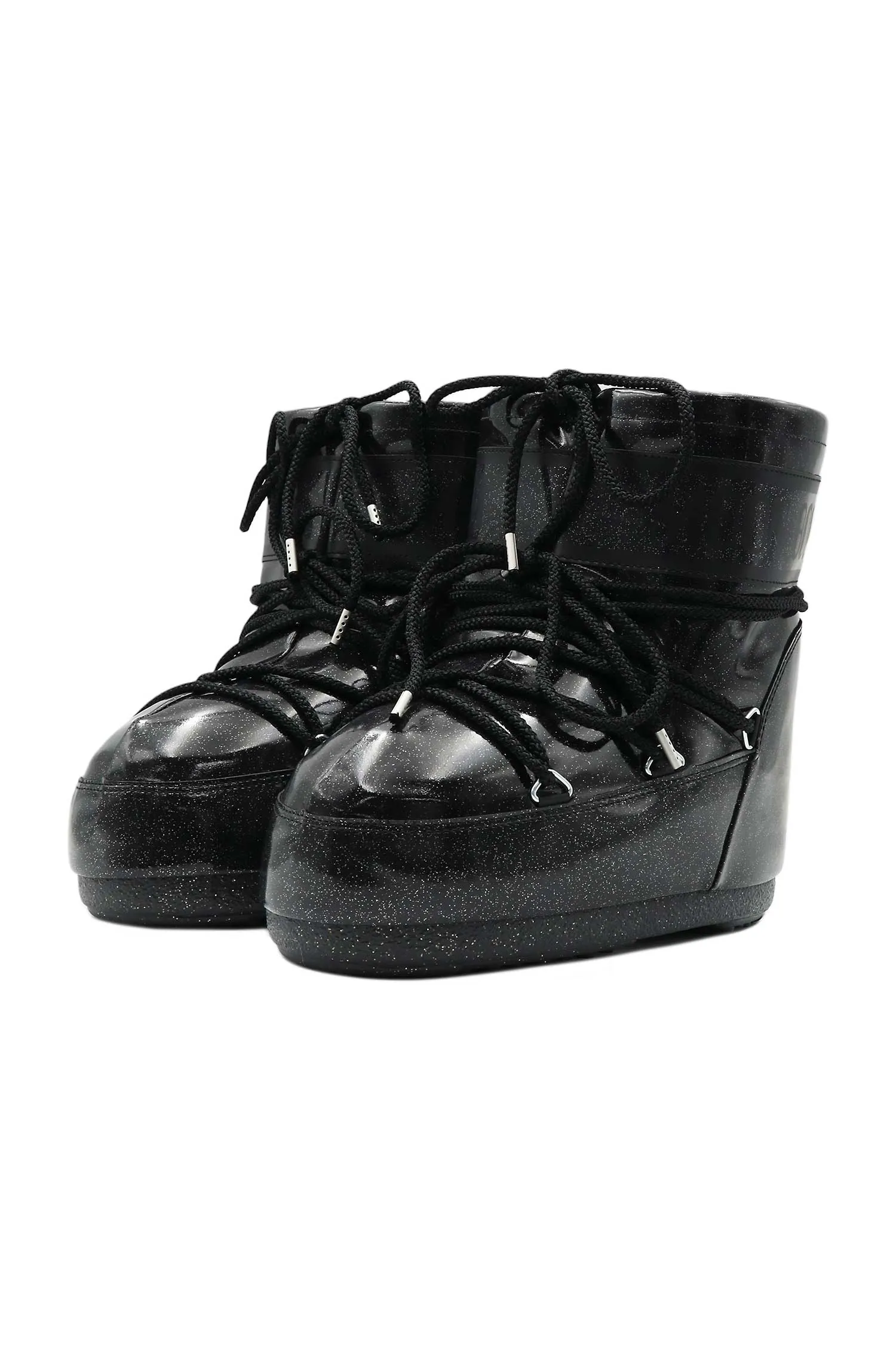 MOON BOOT МУНБУТЫ ICON LOW GLITTER ЧЁРНЫЕ, НИЗКИЕ, ШНУРОВКА, ЛОГО-НАДПИСЬ В ТОН