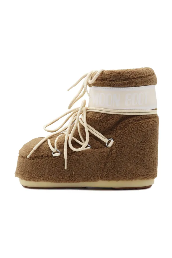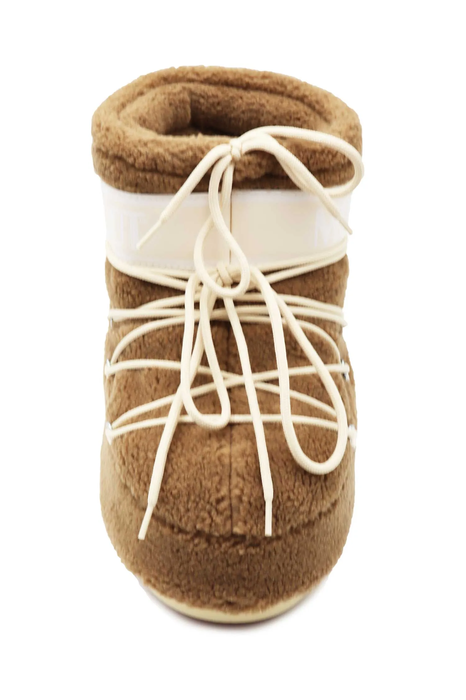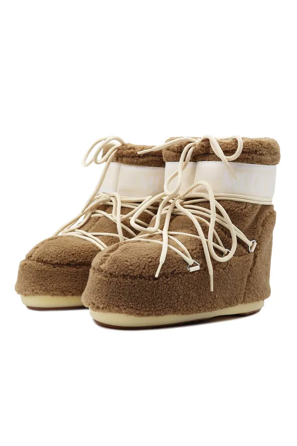 МУНБУТЫ ICON LOW FLEECE Т/БЕЖЕВЫЕ ЭКОМЕХ, НИЗКИЕ, МОЛОЧНАЯ ШНУРОВКА, БЕЛАЯ ЛОГО-НАДПИСЬ