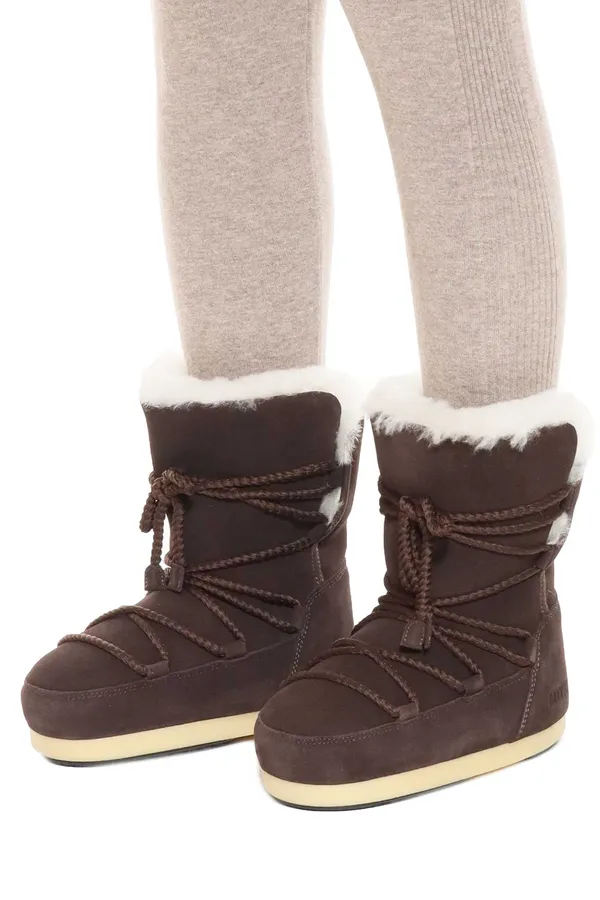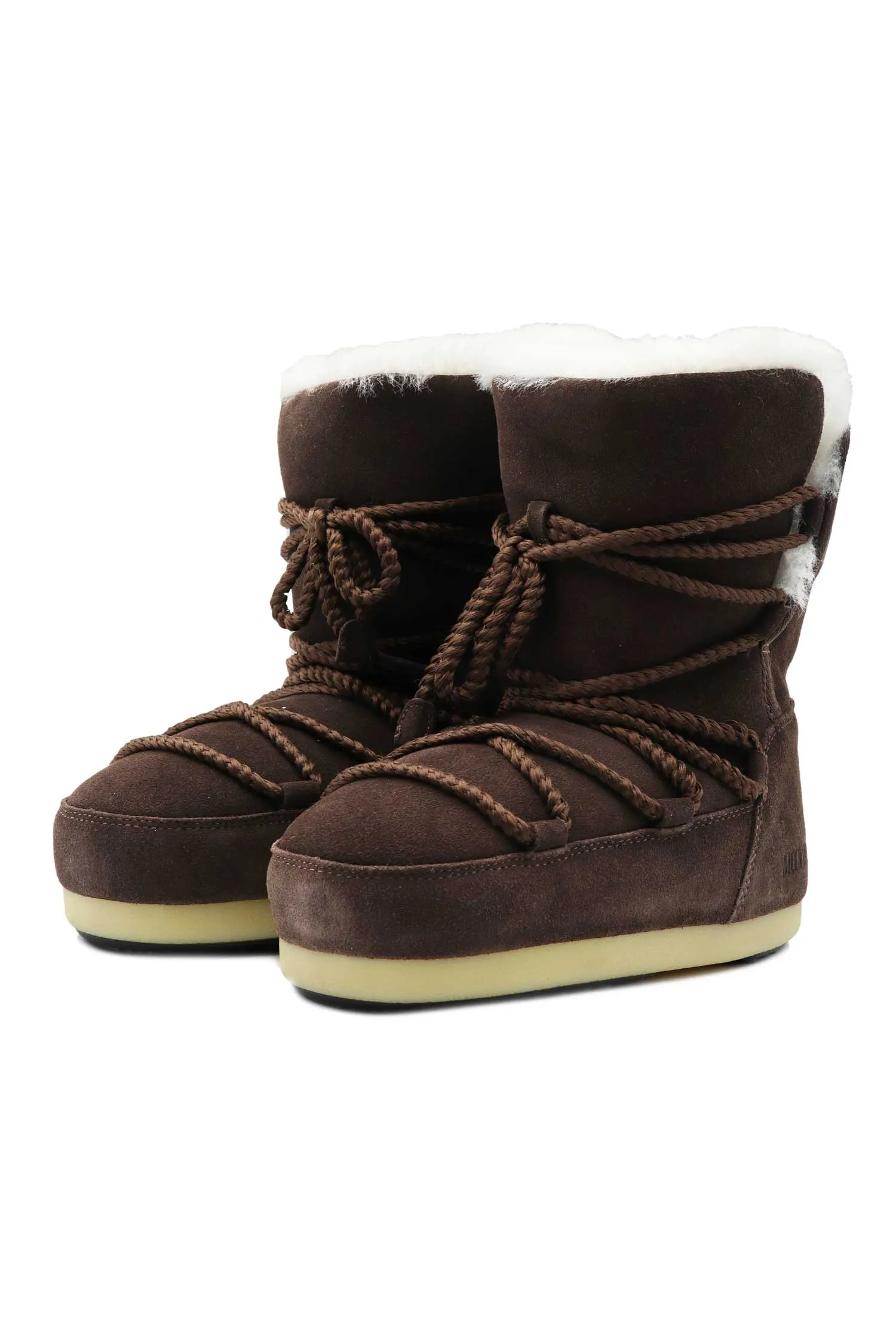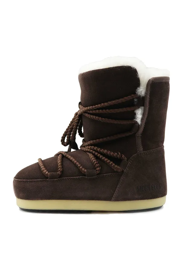 МУНБУТЫ EVX BOOT SUEDE/SHEARLING Т/КОРИЧНЕВЫЕ ЗАМША, ШНУРОВКА В ТОН, БЕЛЫЙ МЕХ