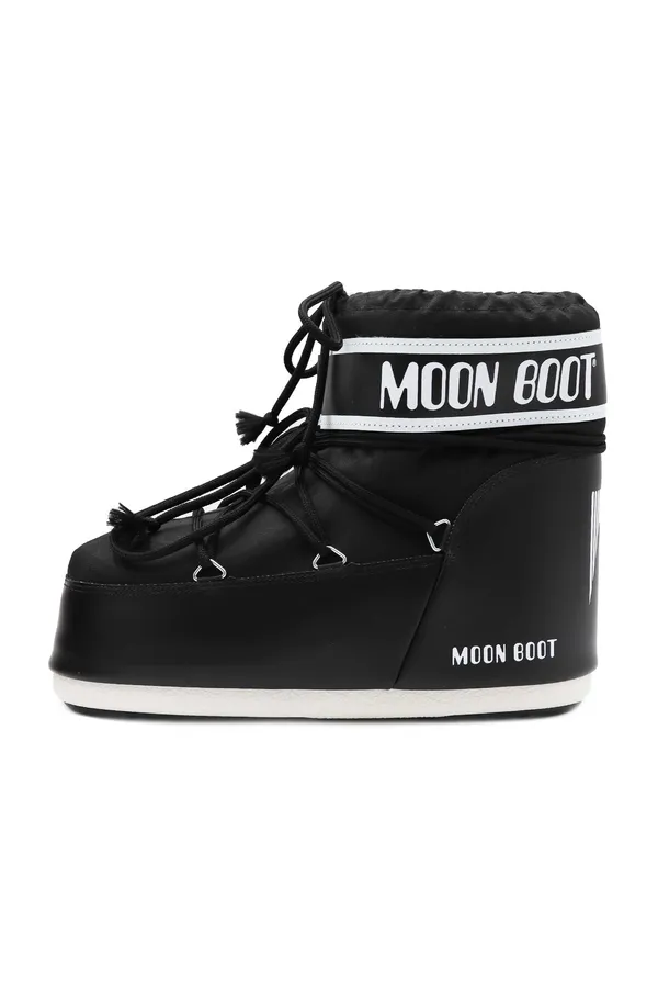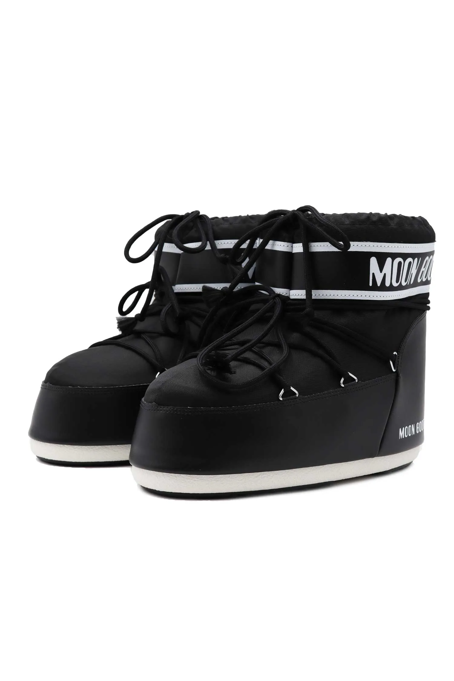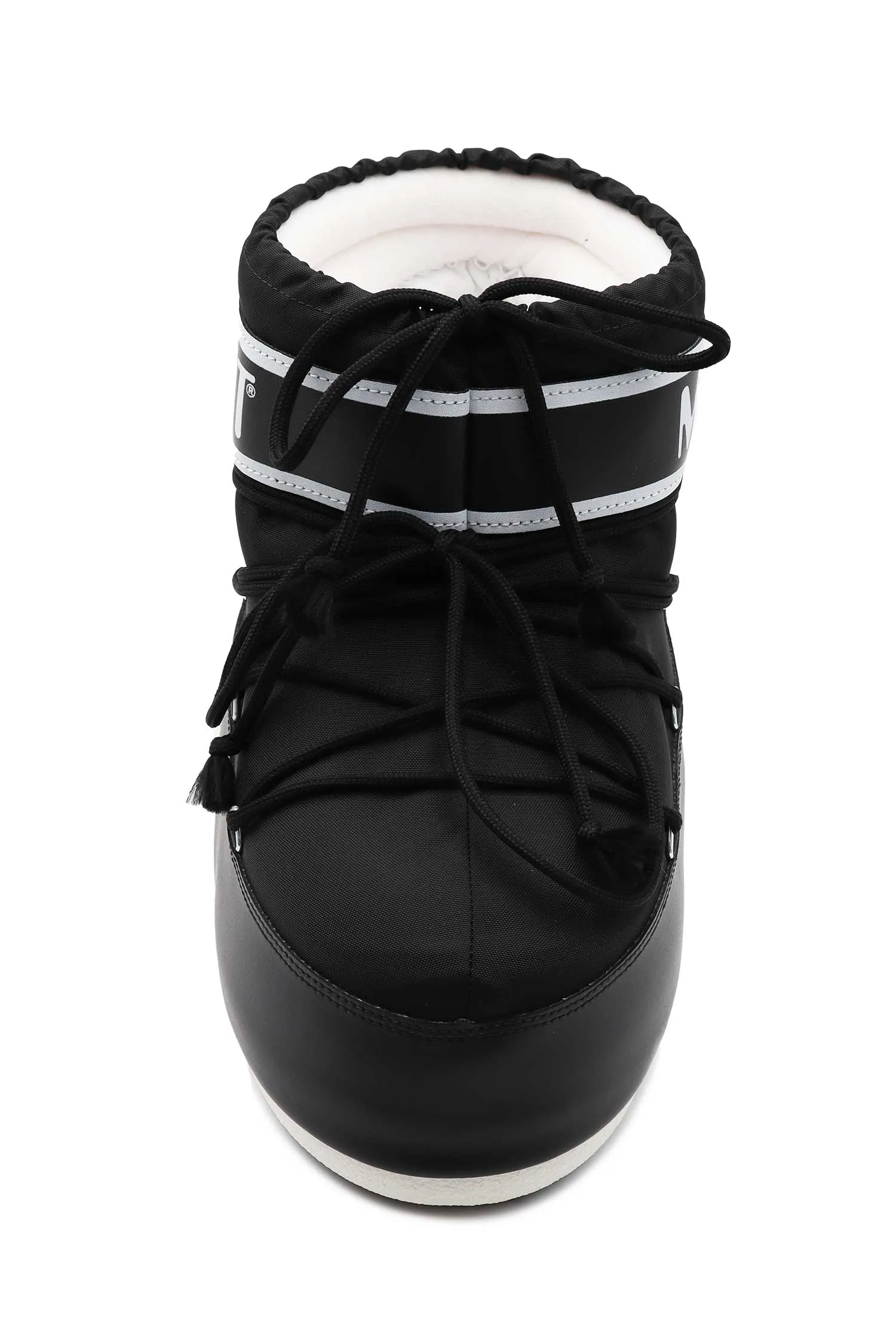 MOON BOOT МУНБУТЫ ICON LOW ЧЁРНЫЕ НЕЙЛОН, НИЗКИЕ, ШНУРОВКА, СВ/СЕРОЕ ЛОГО