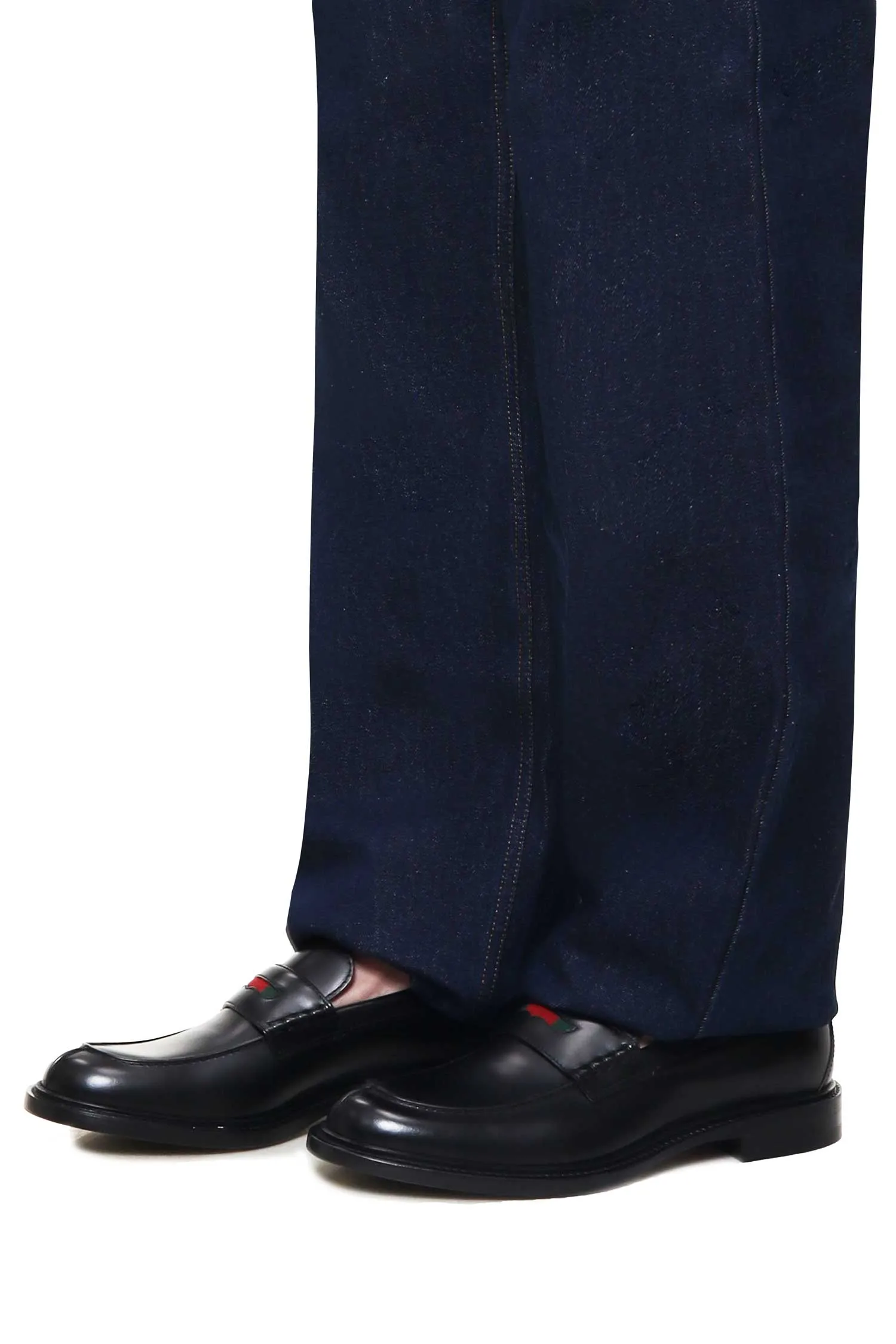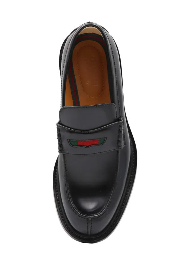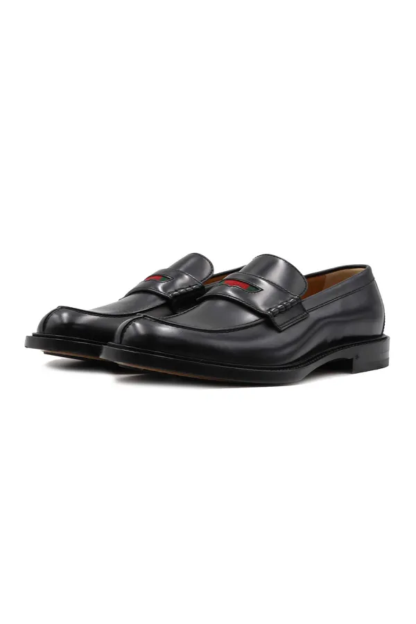 GUCCI ТУФЛИ-ЛОФЕРЫ ЧЁРНЫЕ, ГЛАДКАЯ КОЖА, НА ЯЗЫЧКЕ ВСТАВКА ИЗ КРАСНО-ЗЕЛЁНОЙ ЛЕНТЫ WEB, К=2,5