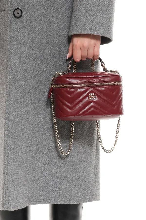 Мини-сумка Gucci GG Marmont — лаконичная модель со стёганой текстурой и фирменной металлической эмблемой. Мягкие линии и круговая застёжка-молния подчёркивают элегантность силуэта, а тонкая цепочка позволяет носить аксессуар на плече или через тело. Внутри — подкладка из тафты и достаточно места для необходимых мелочей. Изготовлено в Италии.