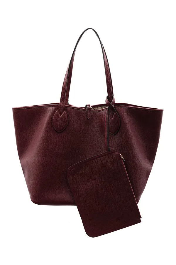 СУМКА-ШОПЕР TOTISSIMA БОРДОВАЯ, ЗЕРНИСТАЯ КОЖА, ЗАСТЁЖКА-КАРАБИН, КОШЕЛЁК, РУЧКИ