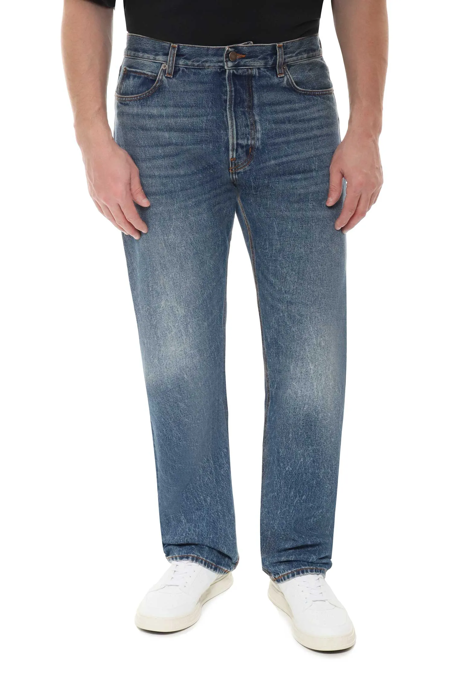 ДЖИНСЫ BLAKE REGULAR Т/СИНИЕ, ВЫБЕЛЕННЫЕ, НА ПУГОВИЦАХ, СНИЗУ ПОТЁРТОСТИ, Ш=22