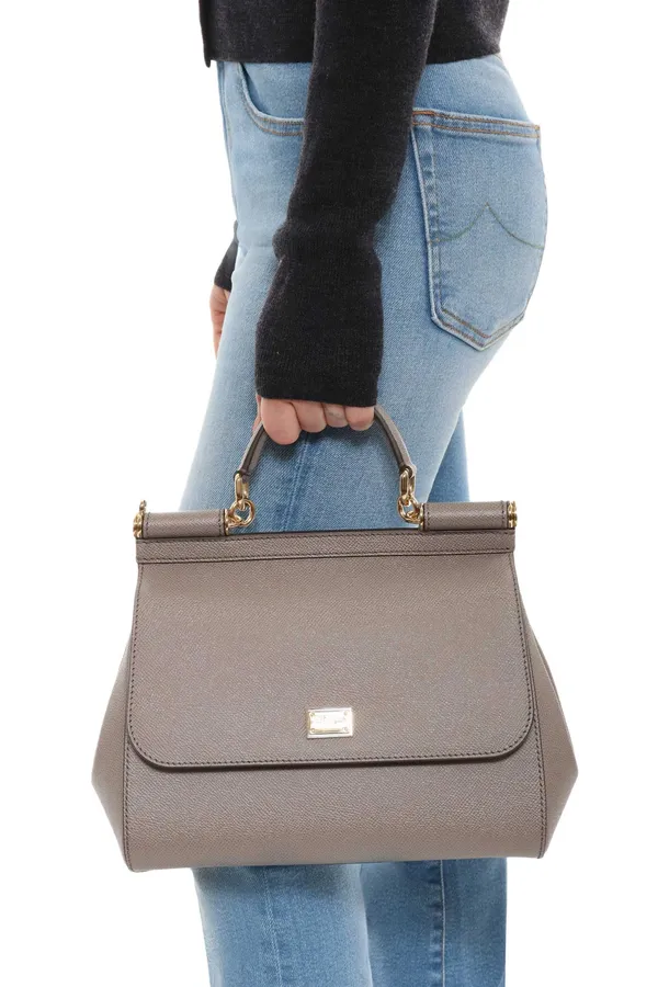 СУМКА SICILY LARGE БЕЖЕВО-КОРИЧНЕВАЯ, ТИСНЁНАЯ КОЖА, ФОРМА САКВОЯЖА, С КЛАПАНОМ, ЗАСТЁЖКА-ФАСТЕКС, РУЧКА, РЕМЕШОК